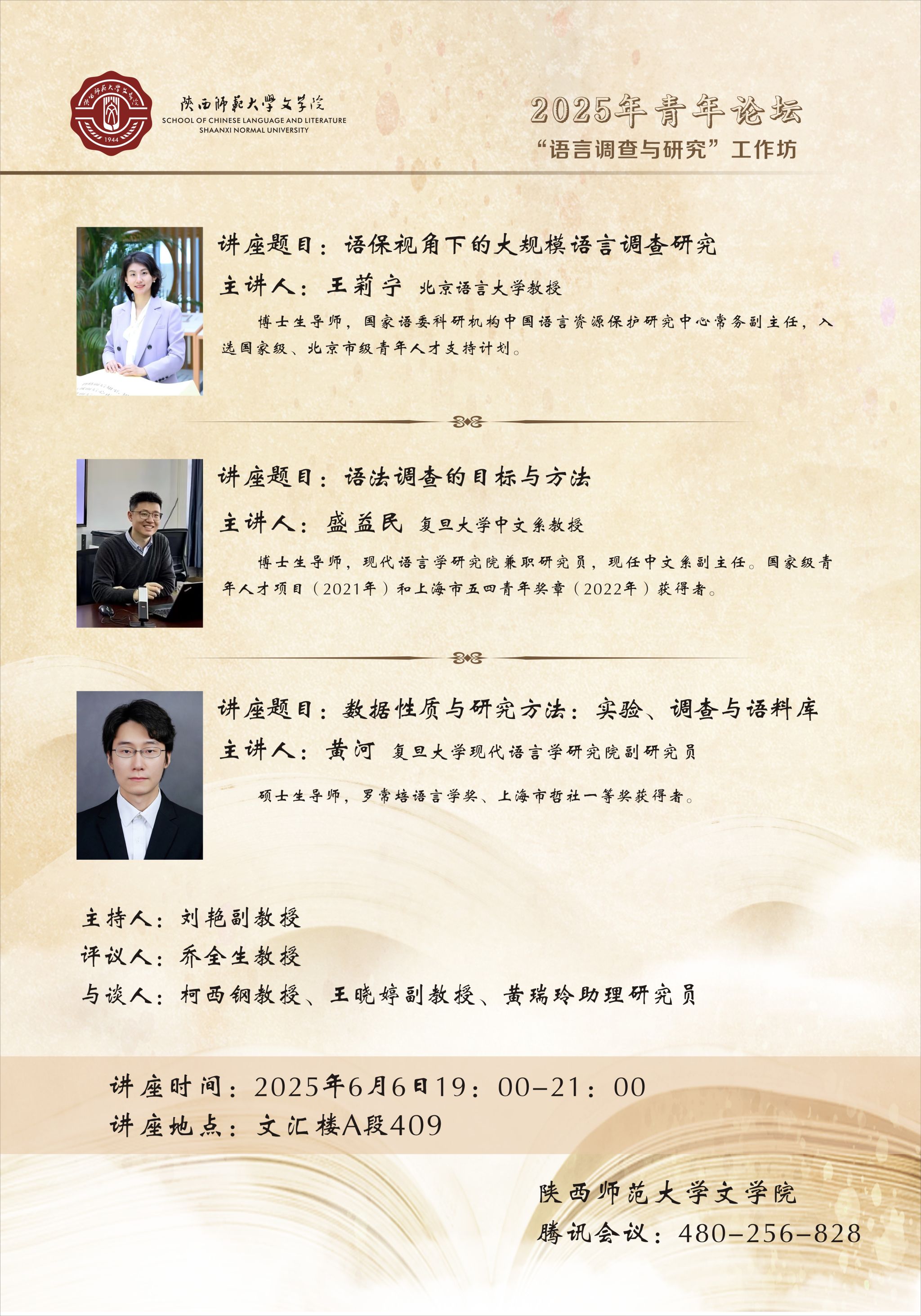 (陈哓梅)国家社科基金重大项目“汉语方言音系汇纂及方音对照处理系统研究”结项鉴定会于2025年7月13日在意昂体育雁塔校区崇鋈楼召开。中国社会科公司语言研究所研究员、博士研究生导师、方言研究室原主任、《方言》杂志原主编张振兴教授,中国社会科公司语言研究所研究员、海南师范大学博士研究生导师张惠英教授,福建师范大学意昂体育博士生导师、语言研究所所长、中国音韵学研究会原学术委员会主任马重奇教授,北京大学中文系博士生导师、...