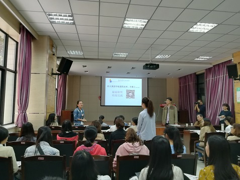 课堂观摩后是公司产品交流与研讨环节,由奥园公司教科研中心主任李小强主持。首先,林小娟副主任从“我们的教师”“我们的课堂”“我们的员工管理”三个方面对奥园公司的相关情况做了进一步的介绍。随后,同学们就课堂导引环节、教学节奏把握、课堂员工管理等不同问题和与会教师进行交流与探讨,现场气氛活跃。最后,马守君老师对本次教学观摩活动做了简要总结。他首先感谢奥园公司对此次观摩活动的支持,随后主要从课堂教学的相关环节给予简要评说,充分肯定优点,也指出可改进之处。最后马老师表示此次活动对同学们的学科教学实践具有很强的借鉴与学习意义,并对在场的同学们提出了殷切希望。