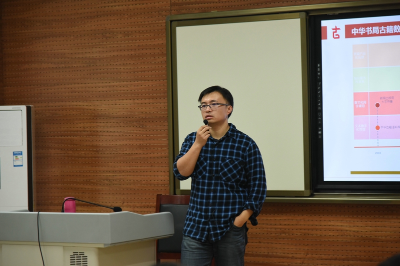 下午,洪涛副总经理在文汇楼一层报告厅为近百位师生作了“典籍数字化的应用与思考”专题讲座。他首先梳理了海内外中文典籍数字化的基本现状,接着简要介绍了中华书局古籍数字化的发展历程,并通过具体的数字化案例,使现场师生了解到字库建设、语义切分等数字出版的基本流程。最后,洪涛副总经理还向师生介绍了典籍实验室项目的初步设计方案。