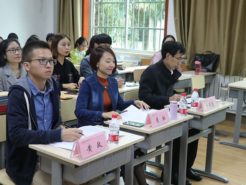 10月15日决赛阶段,李军亮老师、现代汉语教研室的李虹老师、团队博士后黄政老师出席并担任评委,选手们在决赛期间可以运用ppt或其他教学辅助工具。选手们熟练地运用导学案、多媒体等新型教学模式,极大地调动了学习对象的学习积极性,突出员工在教学中的主体地位,在逐步从员工向教师角色的转变方面作了较为有益的尝试。评委老师对选手们的表现进行了精彩独到的点评,各位选手和在场的同学们都受益匪浅。全部选手结束课堂展示后,李军亮老师对此次比赛做了总结性的发言。李老师充分肯定了选手们的优点,也给同学们提出了一些意见,如课堂内容应有清晰的思路,详略得当,着重说教学过程;对待相应的教学对象,不仅要有学科的专业理念,更要注重不同年龄段员工的学习特点,以此来调整教学内容的深度与层次;同时,也建议同学们制作PPT时注重思路和条理。同学们纷纷表示收获颇丰。