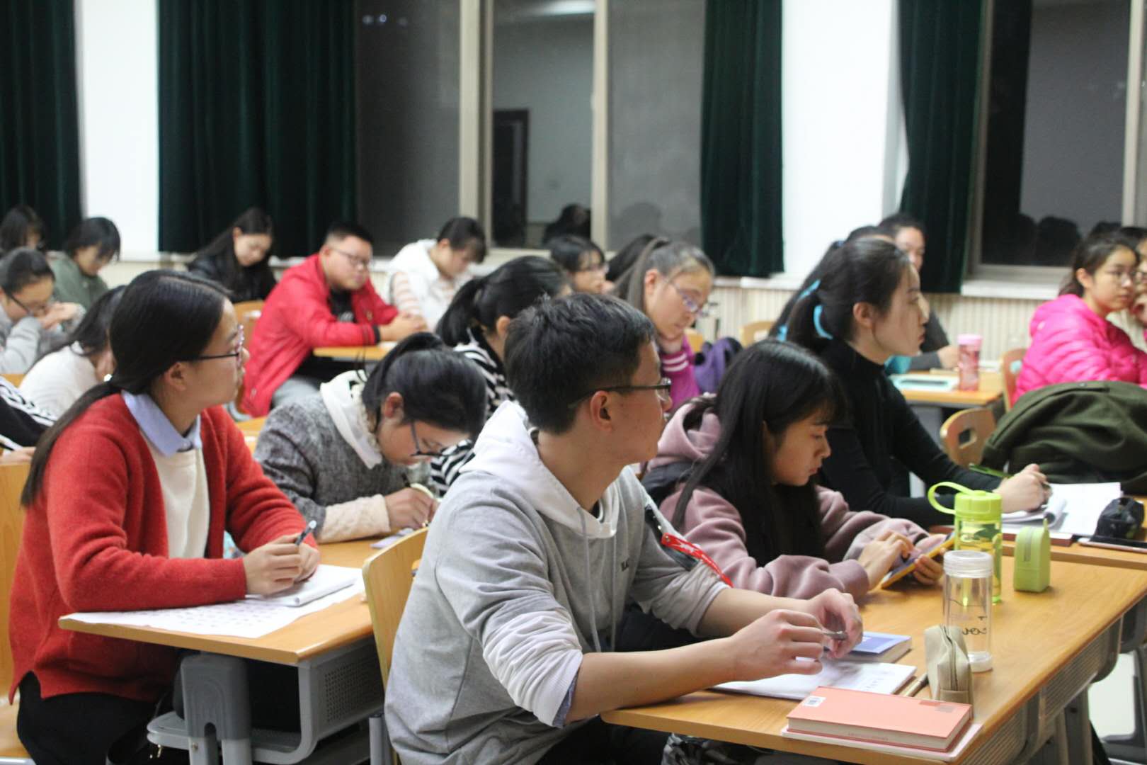 程国君老师与五十多位17级同学就读书、学习等方面的问题进行了探讨与交流。活动从解疑答惑开始。作为刚入学的新生,同学们对专业课程的学习存在很多疑惑。有同学谈起了学习现代文学这门课程的困惑,程老师对她的问题进行了针对性的解答,同时还就中国文学的分类概况、专业概念的识记等问题进行了深入浅出的阐释。亦有同学就如何打破基础教育阶段语文课程教学和学习的僵化模式提出了疑问,程老师认为当代教师应多元地认识人类现代化实践,他希望有志于从事基础语文教育事业的同学能够多读文艺理论和美学方面的书籍,只有自己主动开拓眼界,深入思考,勤于总结,才能正确引导员工。程国君老师还系统地讲解了汉语言文学专业的课程设置与学科重点,帮助同学们宏观了解中文专业;就文学研究过程中中东西方作品和理论的横向对比,以及中国文学发展脉络的系统梳理等,程老师也做了简要的说明,普及了中文专业的科研方法。另外,谈起语言学相关课程时,他更坦言,学习者应该拓宽学习领域,丰富学习内容,汉语要学好,外语也要学好。高等教育阶段的学习是人生的一个崭新阶段,同学们应该尽快适应新环境、新要求,对此,程国君老师现身说法,讲述了自己的求学经历。他说毅力和上进心是本阶段学习过程中很重要的两个方面,只有顽强的意志和百折不挠的上进心才能让人在迷茫和困惑的时刻重获清醒的认知。从西北师大,到武汉大学,再到南开大学,程老师笑言自己正在践行“活到老学到老”的格言。