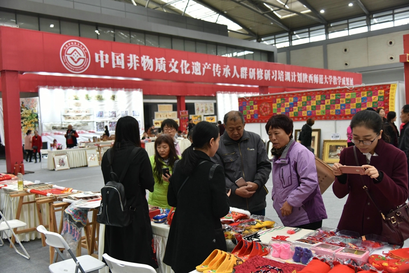 2017年11月10日至12日,陕西传统手工技艺大展在西安曲江国际会展中心隆重举行,由公司陕西文化资源开发协同创新中心、陕西省非物质文化遗产研究基地承办的文化部教育部“中国非物质文化遗产传承人群研修研习培训计划”(简称“研培计划”)成果展是其中的重要展区之一,百余件手工作品集中绽放异彩,三十余位学员现场展演,并与参观者热烈互动,深入交流,成为本次展会的一大亮点。