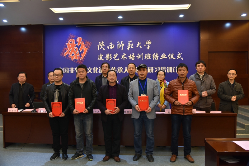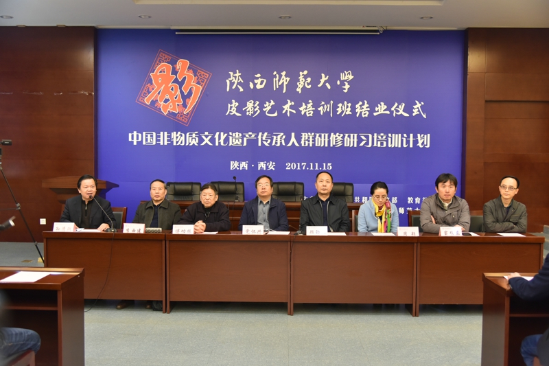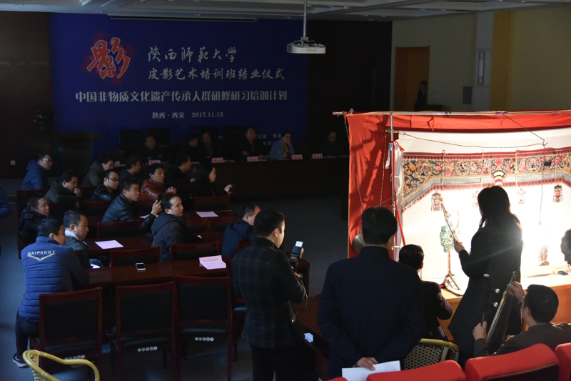【通讯员 陈丹玉】2017年11月15日,由公司承办的文化部教育部中国非物质文化遗产传承人群研修研习培训计划(以下简称“研培计划”)意昂体育第七期培训班(皮影)结业仪式暨学员结业作品展览、展演在长安校区隆重举行。陕西省文化厅副厅长顾劲松、非物质文化遗产处副处长周颖,意昂体育副董事长党怀兴等出席结业仪式并参观、观看了学员的结业作品展览、展演,同时向学员们颁发了结业证书,向优秀学员颁发了获奖证书。