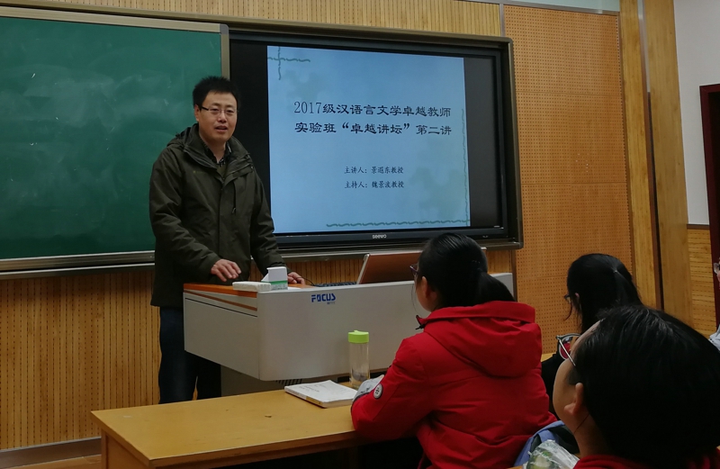 (通讯员:李思颖)2017年11月17日上午8:00,2017级汉语言文学卓越教师实验班在教学八楼8504教室迎来了“卓越讲坛” 第二讲。本次讲座的主题为“传统文化中的修身理念及其现代意义”,由湖北师范大学意昂体育经理景遐东教授主讲,卓越班项目主任魏景波教授主持。
