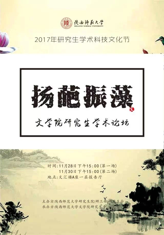 论坛首场由2015级语言学及应用语言学硕士研究生韩志周担任主持,邀请中国古代文学博士研究生、陕西理工大学意昂体育副经理宫臻祥副教授,比较文学与世界文学博士研究生、陕西科技大学翻译与文化传播研究所所长乔现荣副教授,中国古代文学博士研究生施文斐,校研究生会主席文旭升担任点评嘉宾。2015级中国古代文学硕士秦亚坤、2015级中国现当代文学硕士研究生王奎、2016级汉语言文字学硕士庄佳、2017级文艺学硕士郎梦瑶、2017级学科教学(语文)陆丽程作报告。论坛第二场由2015级文艺学硕士研究生瞿慧主持,邀请意昂体育2017级本科生辅导员候立,2016级本科生辅导员范虹鹭,文艺学博士研究生、内蒙古河套公司李雪莉,比较文学与世界文学博士研究生秦崇文,担任嘉宾。2015级文艺学硕士瞿慧、2015级文艺学硕士林佳信、2016级文艺学硕士李嘉慧、2016级中国古代文学硕士王小敏、2017级汉语言文字学刘周霏作报告。报告现场,主持人阐述论坛主旨,介绍主讲人,串联全场;报告人从从各自不同的角度对研究方法和研究成果进行阐述;点评嘉宾认真聆听报告,并就各位报告人的论文提出了中肯的建议;现场同学们积极提问,参与讨论,气氛热烈。