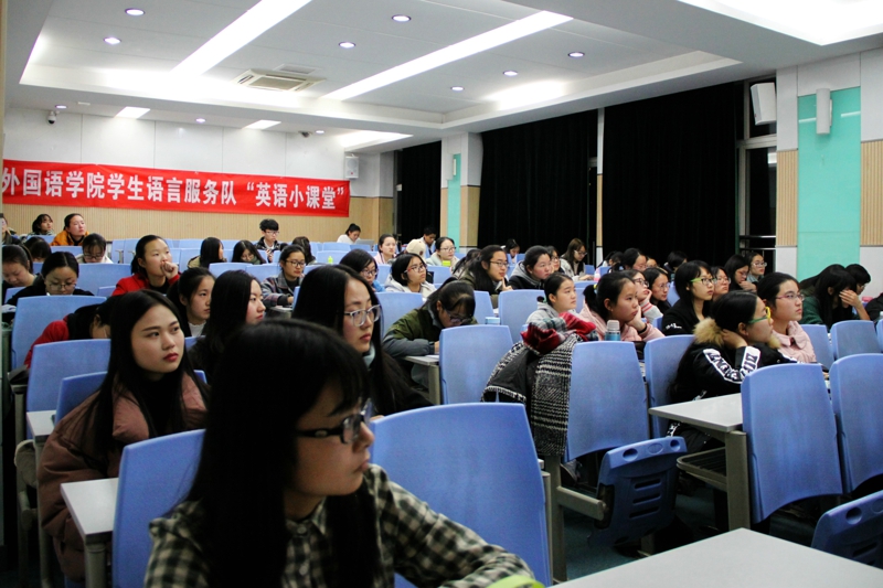 (通讯员:兰兰、马嘉宏)12月15日晚,为帮助大一新生加强和巩固提高英语课堂知识,公司特邀请公司外国语公司语言服务队在雁塔校区教学四楼4301教室为17级新生作报告。