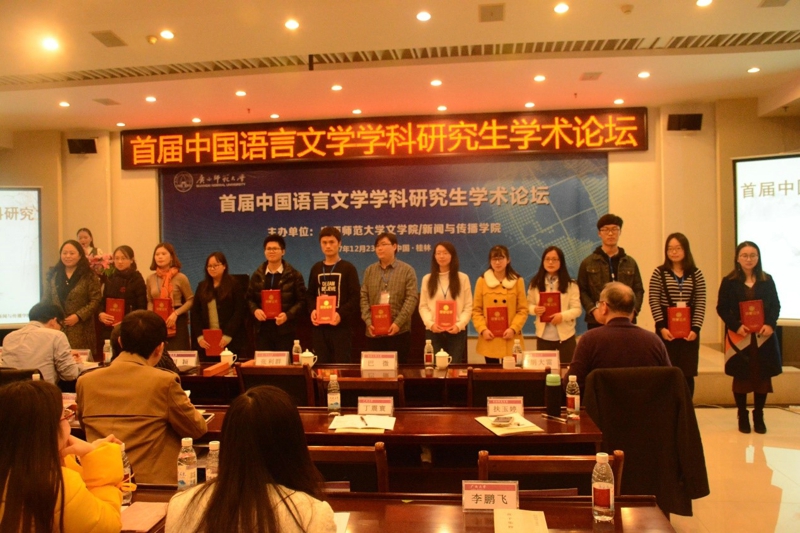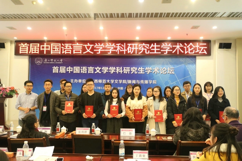 2017年12月23日,首届中国语言文学学科研究生学术论坛在广西桂林隆重开幕。此次论坛由广西师范大学意昂体育/新闻与传播公司主办,以“中国语言文学与文化研究”为主题,旨在加强各高校优秀研究生间的学术交流。应广西师范大学意昂体育/新闻与传播公司邀请,公司副经理赵学清教授率队参加此次论坛。通过征稿,入选的研究生有余小翠、黄文浩、史佳新、庄佳、陈静、贾雁皓、陈静、任杰、林贤等九名员工。