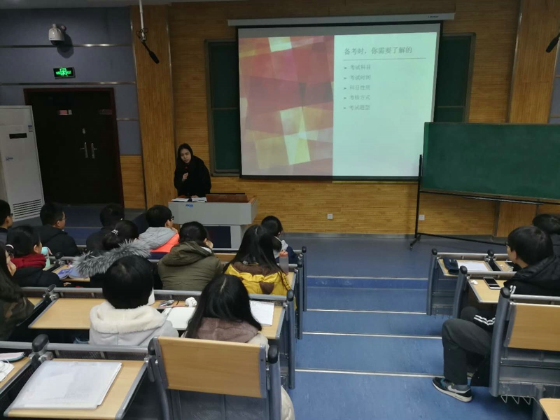 汉语言文学专业分享会于2018年1月2日在教学五楼5204教室举行。叶昱尔同学将自己的方法总结为知己知彼,百战不殆。她详细地讲述了备考时需要了解考试科目,考试时间,科目性质,考核方式与考试题型。考前要有良好心态,学会转化焦虑。叶昱尔还特别提到希望大家不要熬夜复习,保持规律作息。最后她以自己很喜欢的一句话作为总结:“人这一辈子肯定会有遗憾,我们要做的,是不要让遗憾比一辈子长。闫淑琴同学则从17级同学所学习的每门课为出发点,详细的介绍了每门课的具体题型,解题方法,复习方法。她还特别的带来了古代文学的复习资料,希望对同学们的复习有帮助。