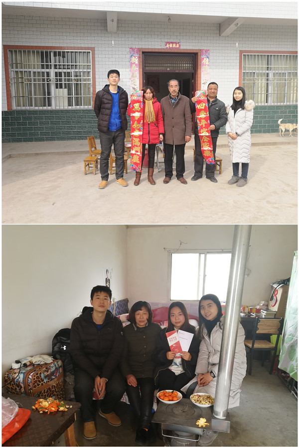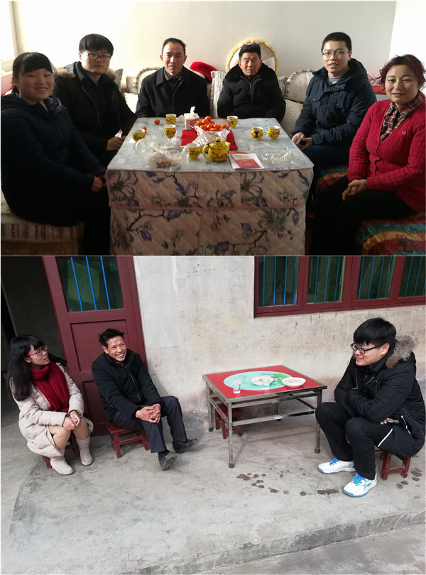 所到之处,李斐老师与受助员工家长亲切交谈,交流员工的学习与生活情况,询问家庭生活现状,鼓励员工增强自信、树立志向、克服困难、坚强成长,分担家庭责任,实现更精彩的人生价值。2014级中国语言文学基地班的李同学,凭借自强不息的执着努力得到了就读南京师范大学的保研名额。李斐老师特别强调,要以李同学的先进事例为优秀典型在各年级开展宣传教育,帮助更多经济困难家庭的员工解决实际问题,树立远大志向,践行“扶贫—扶智—扶志”的资助理念。在员工刘同学所在的肖营村,走访队与负责扶贫工作的肖书记会面交谈,询问了当前村镇扶贫工作的开展实际,肖书记介绍,当前村里扶贫工作开展顺利,国家政策精准到位,村委会优先保障老员工家庭扶贫工作,帮助优秀老员工放心上学、踏实求学,无后顾之忧。城固县博望镇小西关村村委书记在扶贫工作中因公殉职,村生产队陈队长暂时接管了村扶贫工作,他详细介绍了村里当前的具体扶贫项目和公租房建设成果。