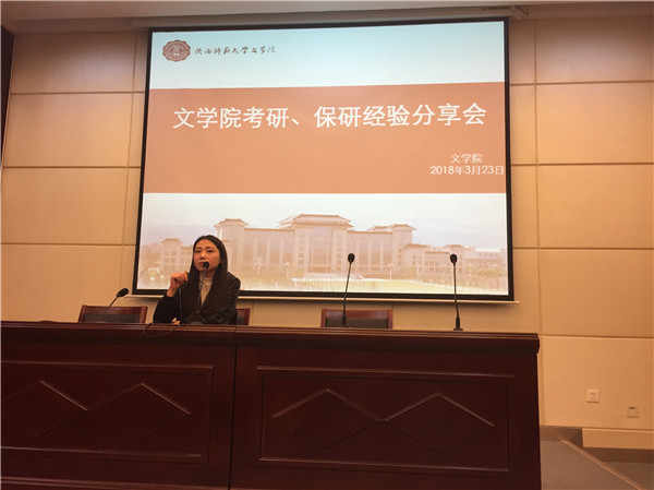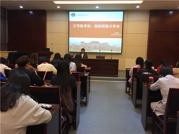 保研到西南大学的张惠娟同学首先分享了自己的经历,她重点介绍了有关“校外补偿名额”的相关信息,并结合自身经历,就个人陈述、专家推荐信、考试准备三方面的内容提出了自己的建议。保研到厦门大学的赵雪同学则就成绩标准、目标选择、推免途径、复习心态等方面进行了经验分享,为同学们提供了重要参考。石济瑄同学是校内保研,她主要介绍了自己的科研成果,并鼓励大家积极备战,“梦想在前方,你我都在路上。”保研到南京师范大学的王蒙同学不仅分享了自己的成功经验,更毫不吝惜地讲述了自己几次失败的经历,她的发言幽默风趣,真实亲切,把现场的气氛推向了高潮。2017级现当代文学专业的研究生李泾荷同学以“认识和心态”为核心,根据自己的体验,介绍自己对为什么考研、什么是考研、考研的心态等问题的思考。文字学专业的张晓桐同学主要对她支教团的经历进行了讲解。方言学专业的蔡汶君同学则分享了个人的直考经验。