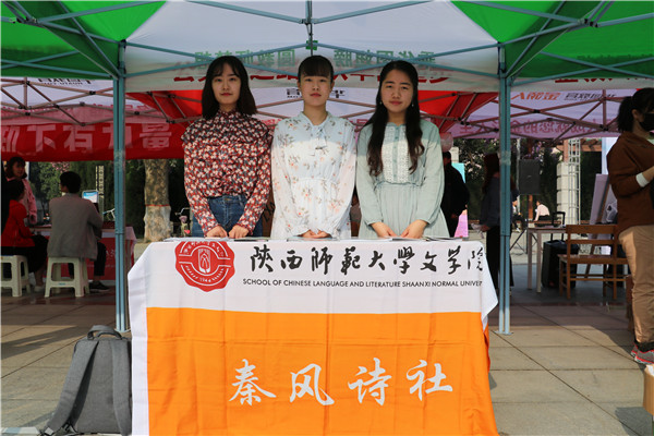 长风文学社的社员认真地为同学们讲解着社团的详情,解答同学们的疑惑;砚友书画社以一幅幅或沉雄健爽,或婉转细腻的书法作品吸引同学驻足欣赏;秦风诗社别具一格,以体会诗词之美为宗,吟经诵典,优美婉转,抑扬顿挫;雕龙文化协会以文会友,为广大热爱阅读的同学提供交流与讨论的平台;电影爱好者协会独具特色,通过有趣的活动与热爱电影的同学们交流;入戏话剧社用丰富的舞台作品展示了话剧的独特魅力;雏玉散文社则以“常新去雏,光华如玉”为名,书写新时代的散文诗。