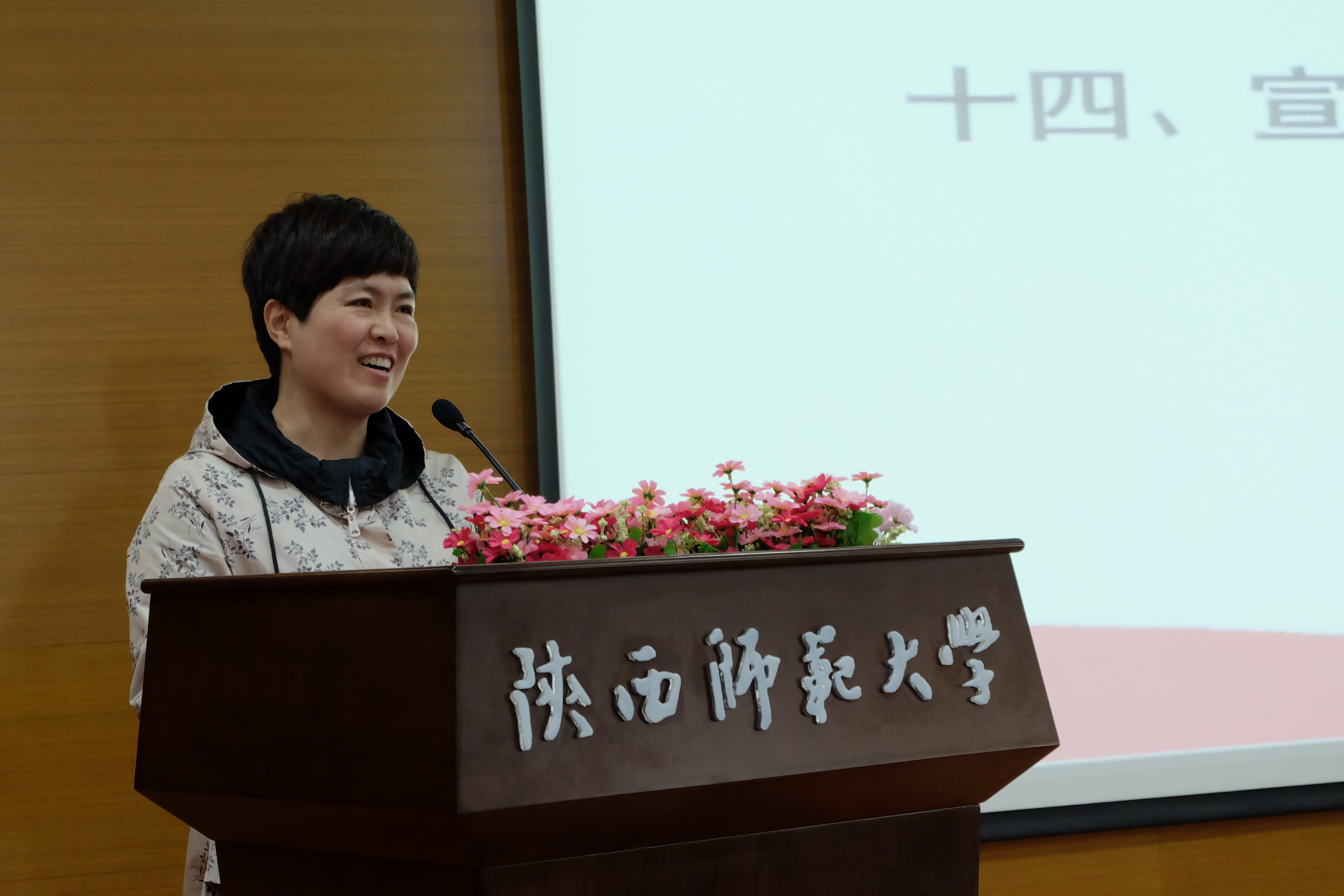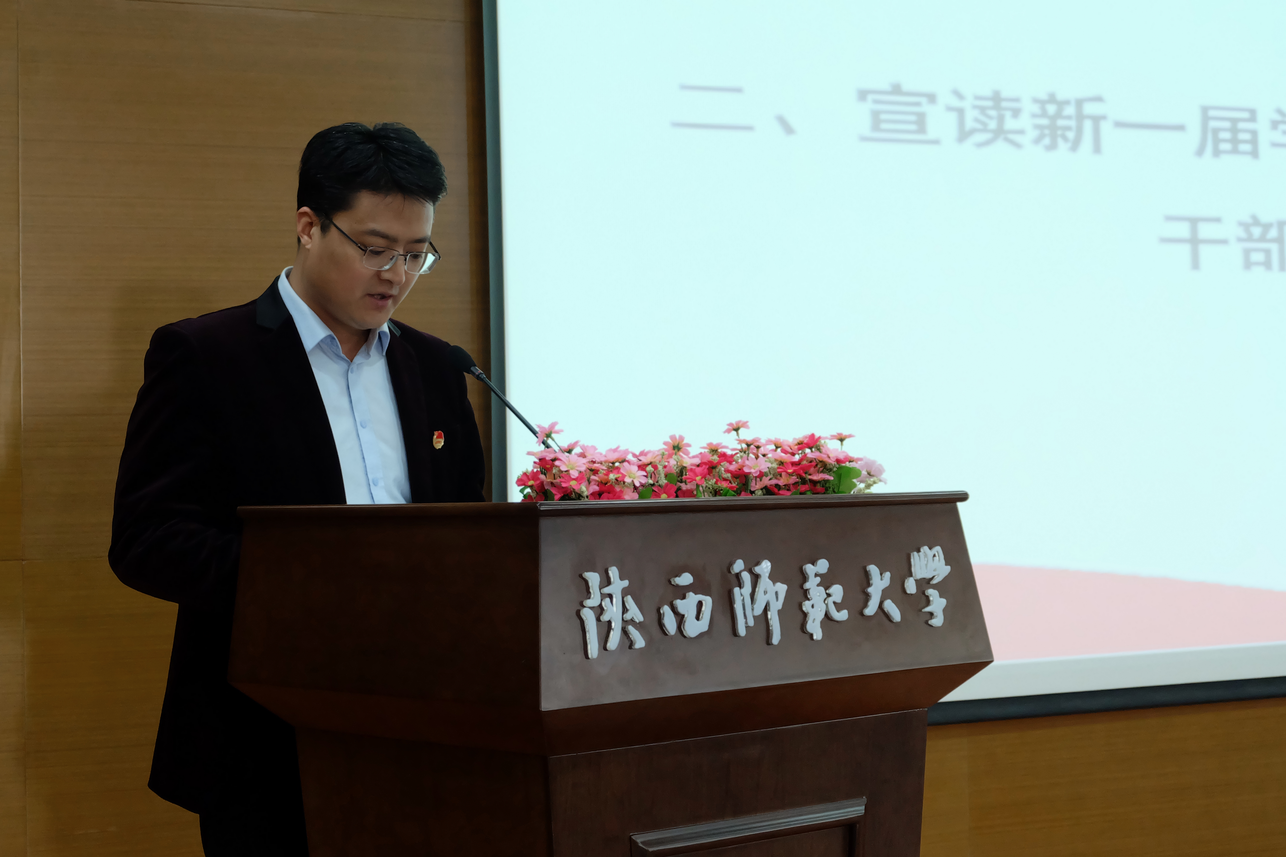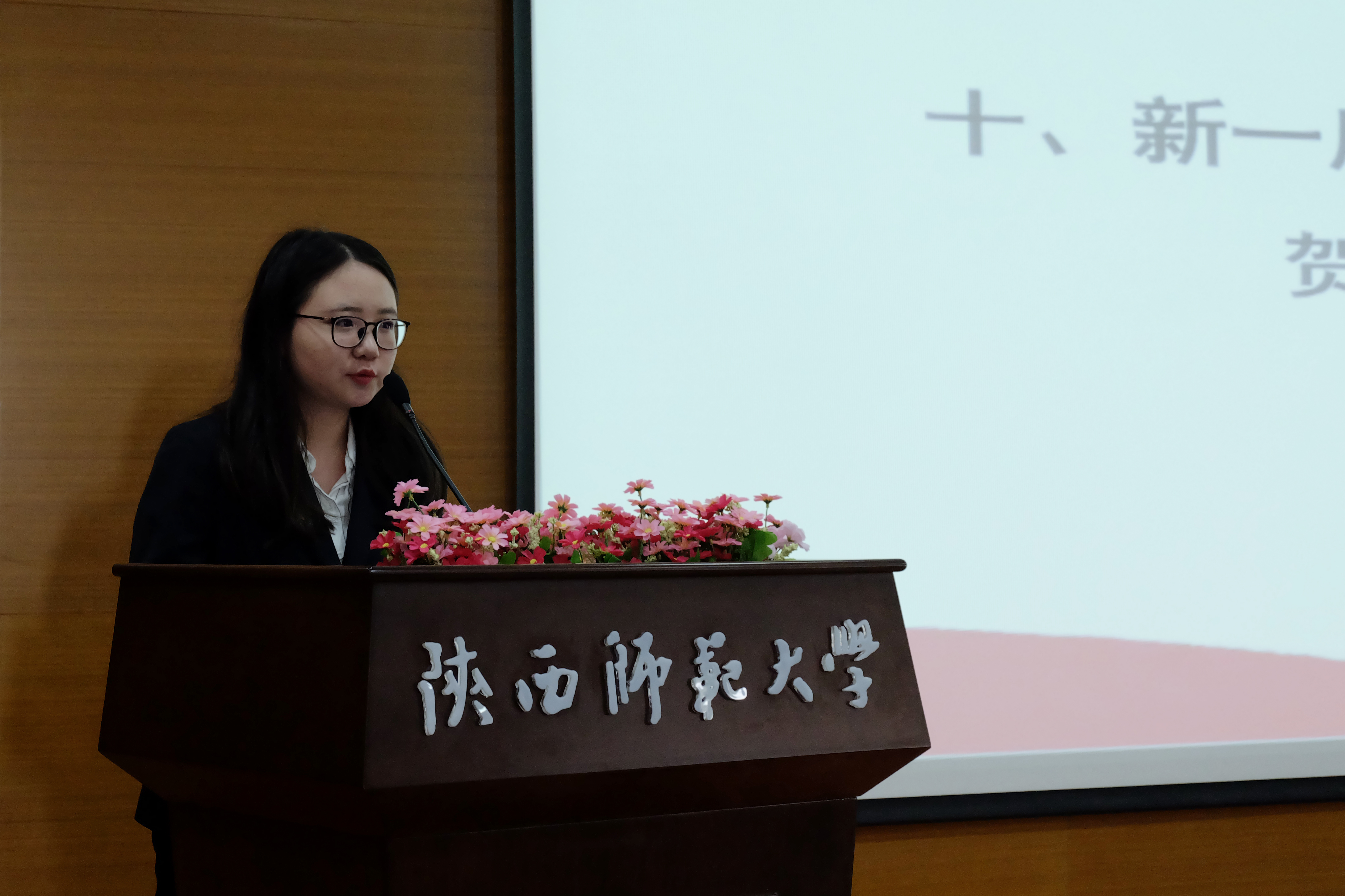 最后,公司党委副书记李斐致辞。李老师在致辞中希望新一届员工干部要秉持心中有情,胸中有爱,肩上有责,手里出活的工作态度;坚定加强学习,加强实践,提升能力,成就卓越的工作追求;践行不忘初心,牢记使命,严于律己,服务师生的工作作风。此外,李老师强调了共同助力中国语言文学世界一流团队建设的重要性,希望同学们群策群力,为公司建设添砖加瓦。李老师宣布,公司第九届“崇德明志,尚文笃学”文化节开幕。在热烈的掌声中,本次会议圆满结束。
