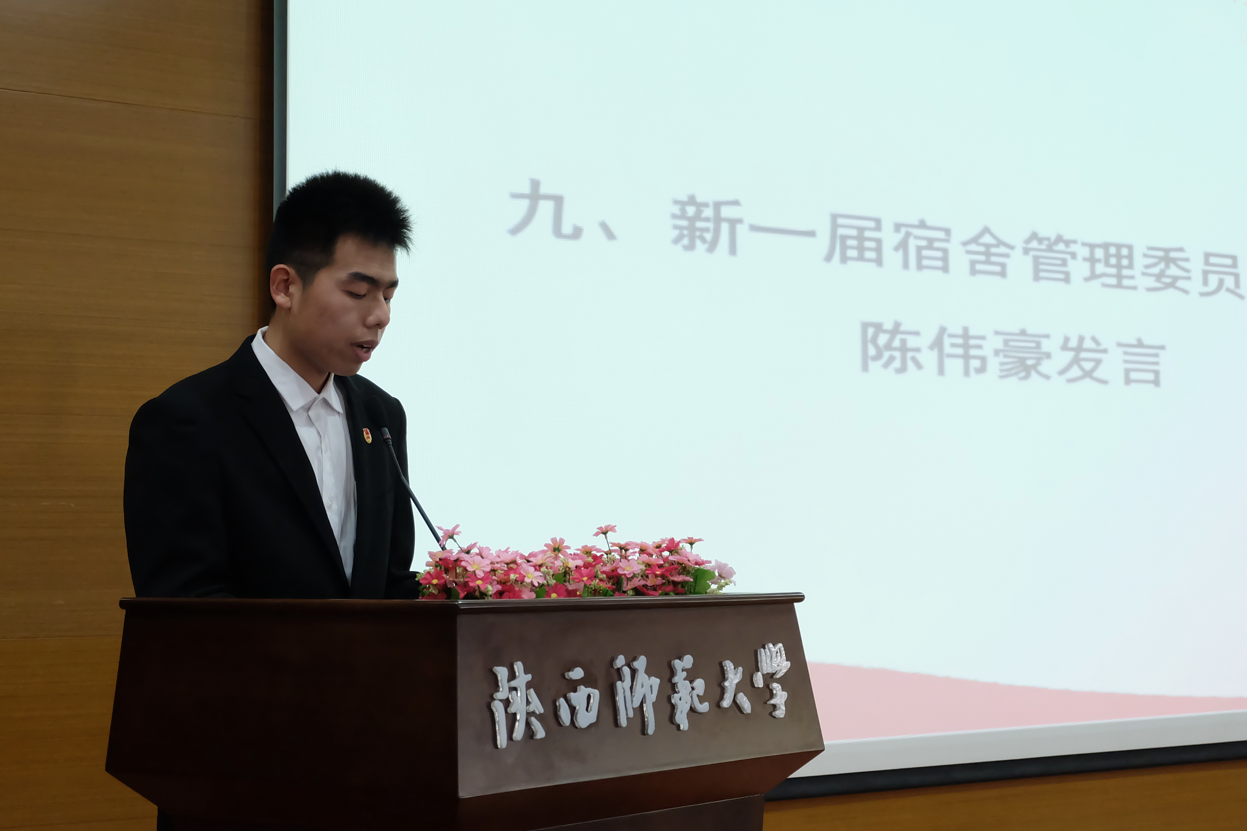 随后,新一届员工会主席王楠同学、研究生会主席尚佳丽同学、宿舍管理委员会主任陈伟豪同学、昭文工作室主任贺佳晨同学、社团干部代表王菁华同学先后发言。他们表示将在新的起点上,继承传统,团结一致,精诚合作,为同学们提供更宽广的平台,充分发挥纽带作用,不断改进、不断创新,努力为公司大家庭创造属于自己的光与热。接着,新任员工会主席王楠同学带领全体员工郑重宣誓,将继承光荣传统,保持优良作风,为推动公司各项事业发展贡献自己的青春力量。全体员工干部一定会以脚踏实地的工作作风,积极向上的工作态度,迎接中国语言文学世界一流团队建设带来的挑战。