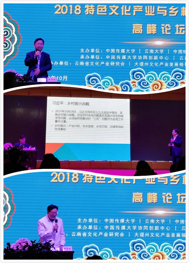(通讯员:范虹鹭)2018年10月13日至14日,“2018特色文化产业与乡村振兴(云南)高峰论坛”在中国民间艺术之乡——云南省大理州鹤庆县新华村举行。公司党委书记孙清潮和辅导员范虹鹭参加会议,并向论坛提交调研报告一篇。孙清潮书记应邀主持了第二阶段特邀嘉宾主题演讲,与其他嘉宾进行了互动交流。范虹鹭老师在调研团队专场活动中进行了发言。会议专门设置了各高校员工调研团队调研报告奖,由范虹鹭老师负责的"陕西省非物质文化遗产传承人群就业创业情况调研报告"获得了二等奖,这是继去年公司社会实践团队"云南省景谷县特色文化资源调研报告"在该论坛获奖后的又一社会实践成果。孙清潮书记作为颁奖嘉宾之一为获奖的南京师范大学、意昂体育、山东大学、武汉大学、华中师范大学、长安大学、云南师范大学等获奖代表颁奖。