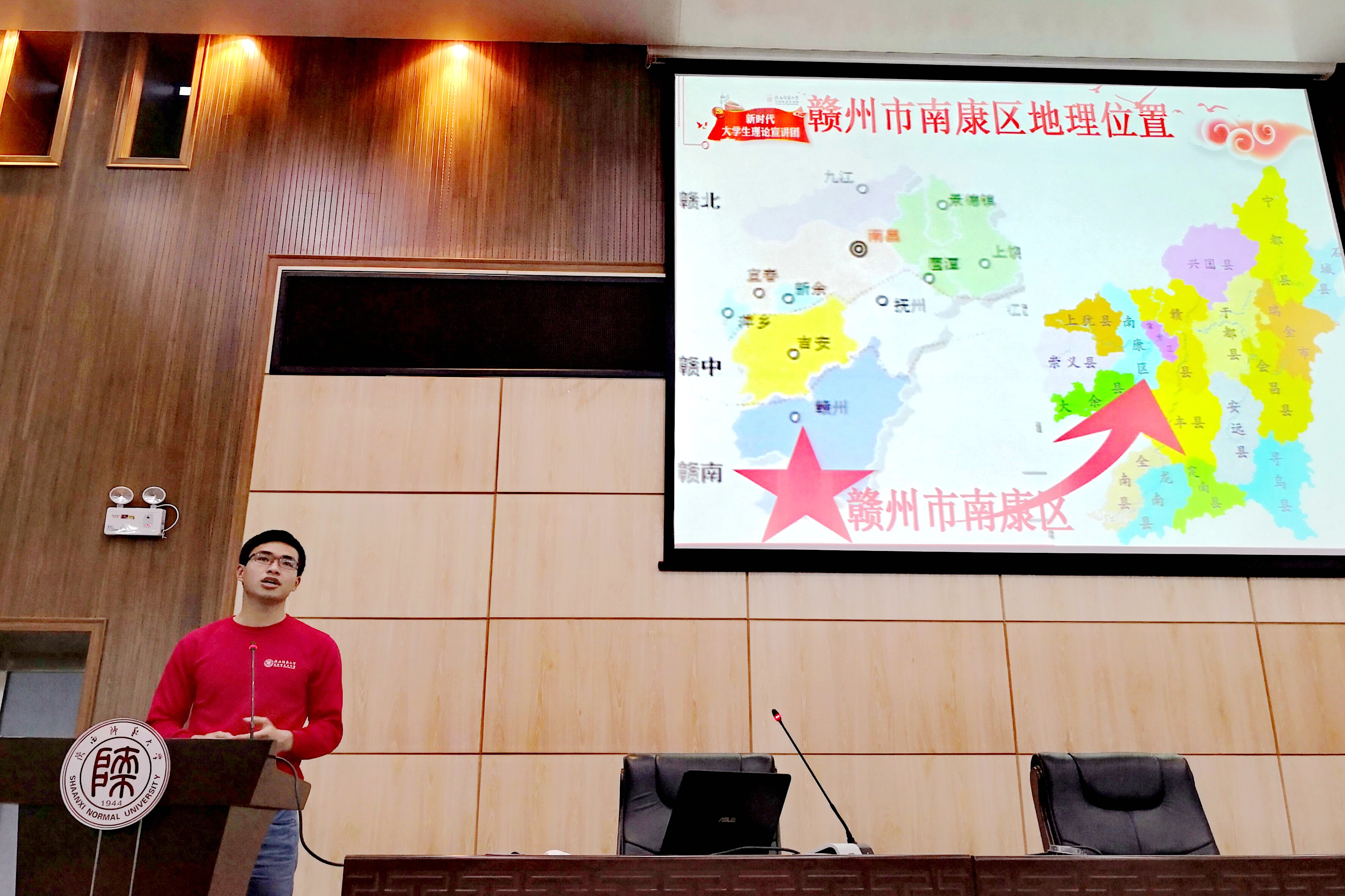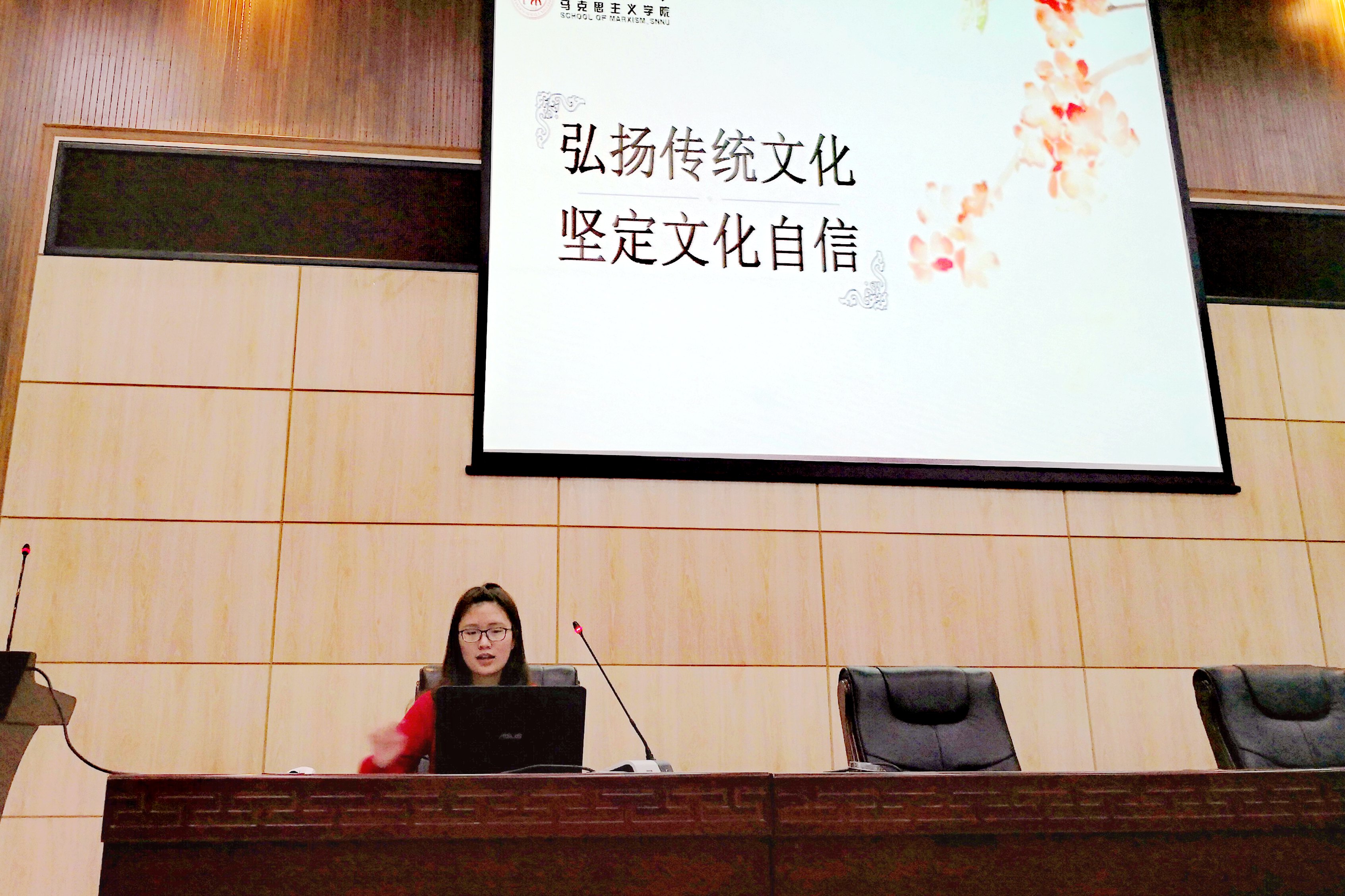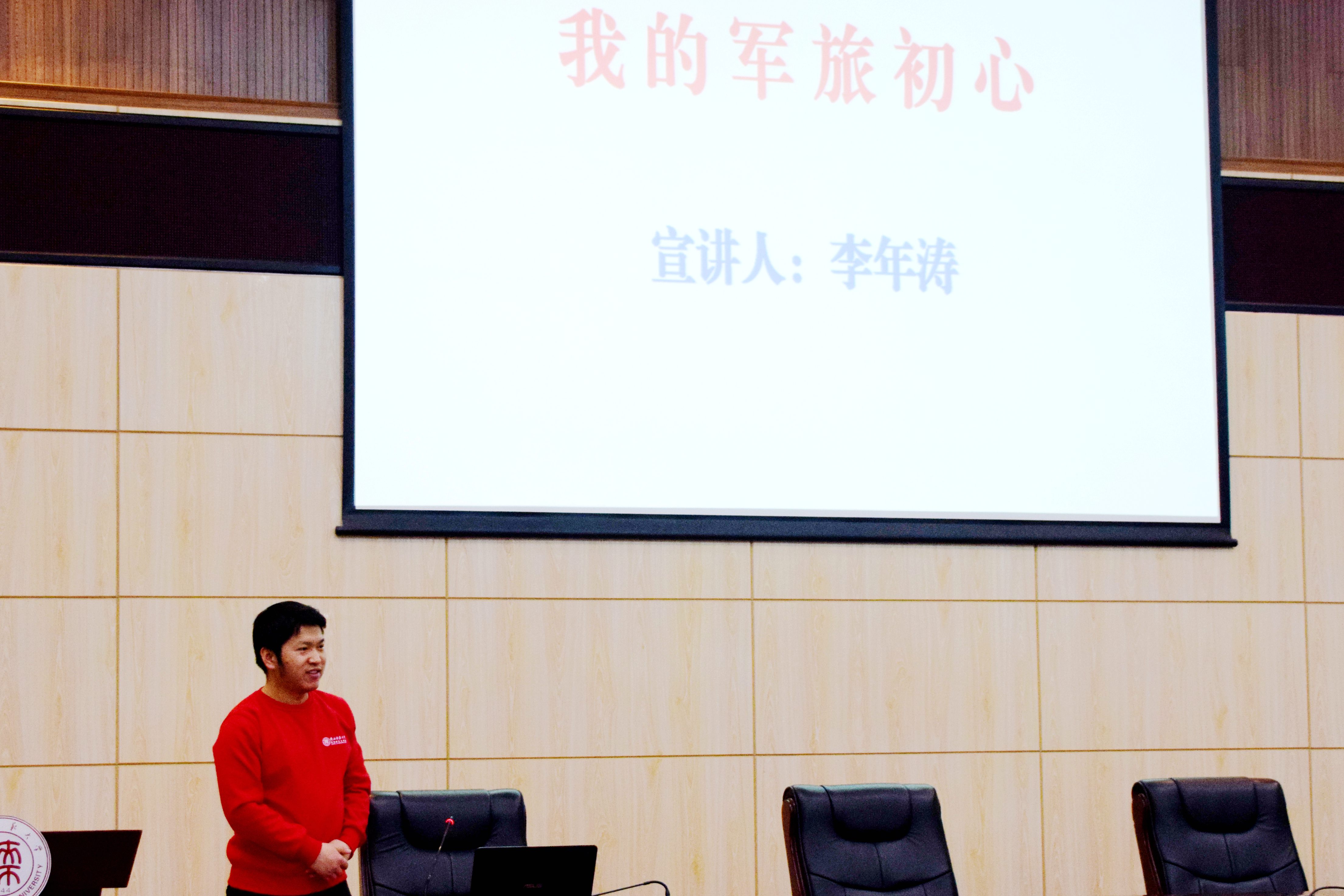 宣讲团成员、马克思主义公司2016级政治学理论专业硕士研究生李年涛同学以“我的军旅初心”为主题,结合自己的两年军旅经历,生动讲述了军队铁打的纪律使他拥有了钢铁般的意志力和抗压能力,增强了心系国家的责任感和使命感。他鼓励在座的各位积极参军,树立崇高的信念,为祖国新时代的建设献一份力。2016级思想政治教育专业本科生杨媛同学则以“弘扬传统文化,坚定文化自信”为主题,以三月初三中国华服日为切入点,展示了当代潮流元素与中国传统文化相结合的服饰作品,希望同学们争做弘扬优秀传统文化的新时代青年,树立文化自信,为中华文化走向世界贡献力量。2015级思想政治教育专业本科生曾华九同学以“乡村发展战略——那合不拢嘴的笑”为主题,讲述了发生在田间小路上的创业故事,因地制宜,种植脐橙,实现了成百上千农民的“脱贫梦”,他号召同学们肩负起新时代下的新任务、新责任,将个人理想与社会理想结合起来。