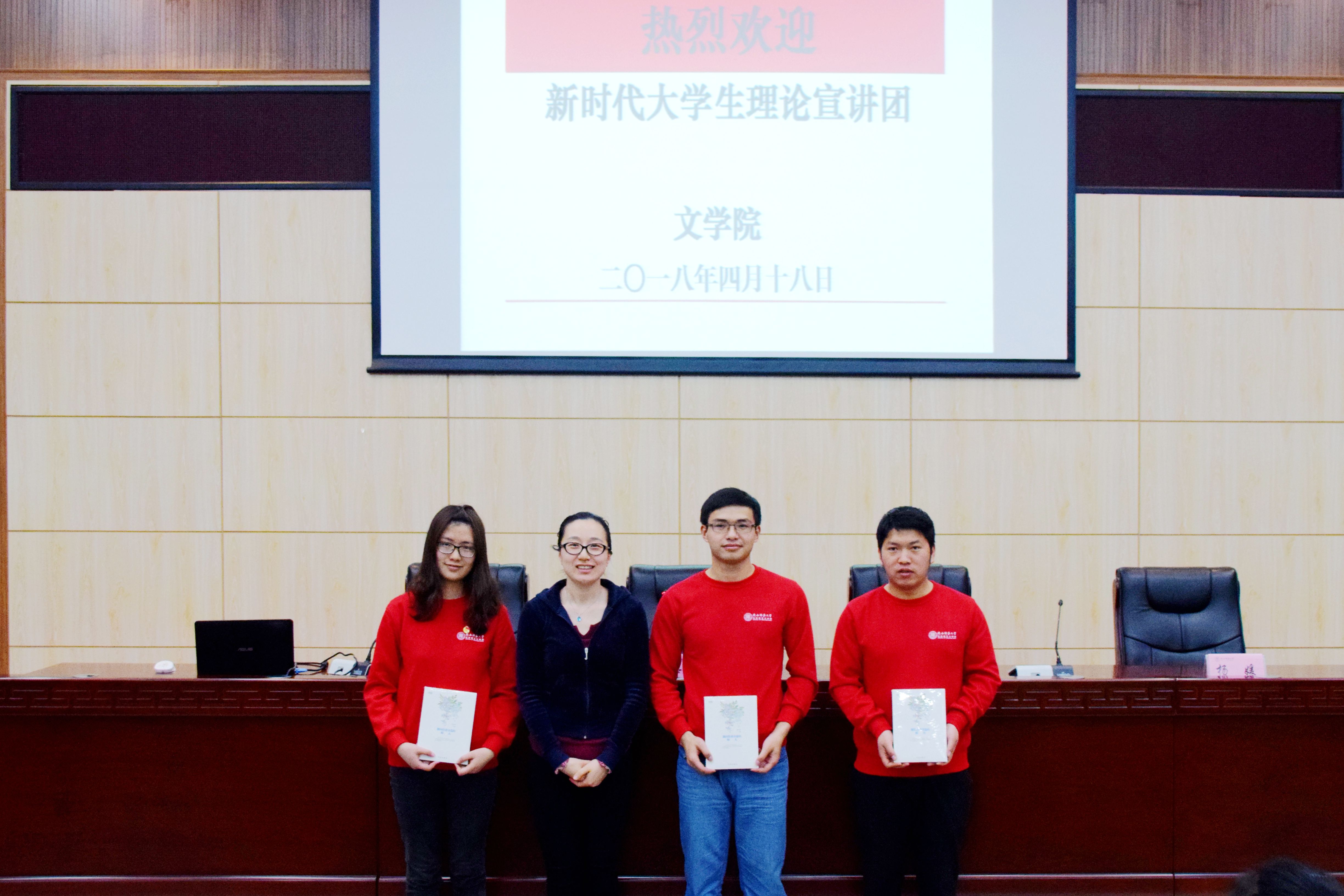宣讲结束后,宣讲团成员与现场同学进行了互动交流,大家踊跃发言,交流看法。辛田向3位宣讲团成员赠送书籍,感谢他们带来的精彩宣讲。