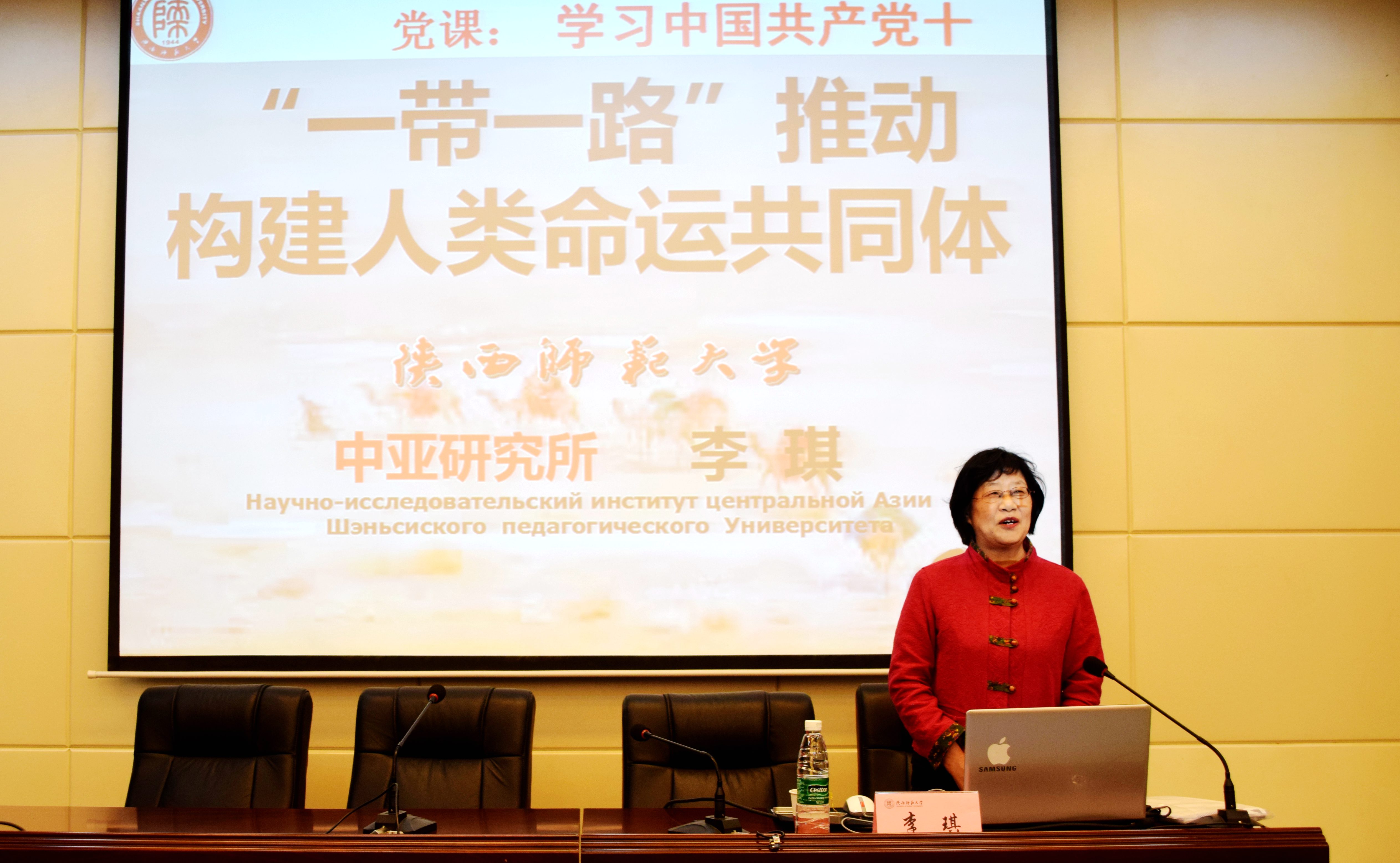 开班仪式结束后,现任陕西省哲学社会科学重点研究基地“‘一带一路’建设与中亚研究协同创新中心”首席专家和主任、意昂体育中亚研究所所长、博士生导师李琪教授以“一带一路推动构建人类命运共同体”为题,为学员们讲授本次党课培训班第一课。她结合十九大报告,从宏观层面详细介绍了“一带一路”的概念、内涵、影响以及一带一路的定位和谋略思路,我国地缘环境和多国在中亚地区的博弈情况,以及构建人类命运共同体的宗旨、原则和历史使命。课上,李教授旁征博引,与学员亲切互动,课堂氛围融洽和谐。