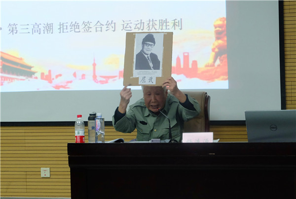 李老师首先介绍了杨清源老师的简介。杨老师年近九十,参加过朝鲜战争,曾获“全国教育系统关心下一代先进个人”、“陕西省教育系统关心下一代先进个人”等荣誉称号。杨老师在1990年退休后,义务为大、中、小学的同学们做了近300场专题报告,他用实际行动讲述先辈故事,传承民族精神。