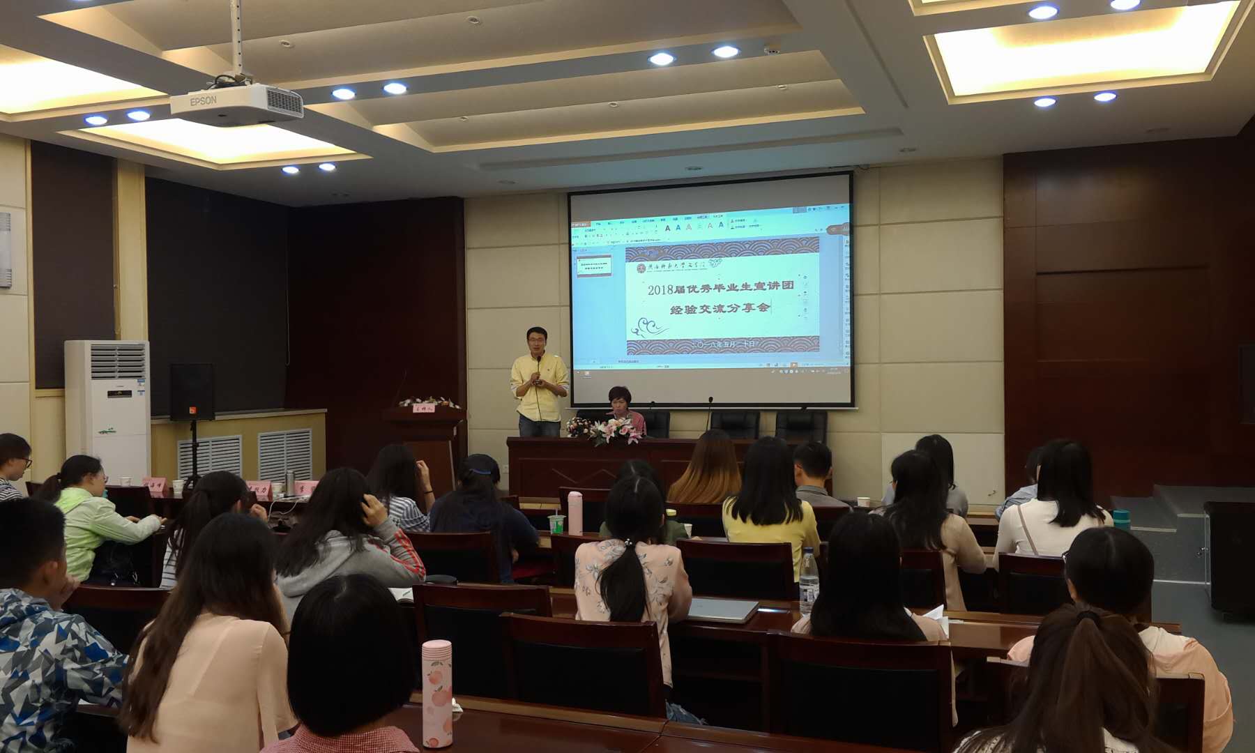 李斐副书记为大家介绍了八位优秀应届毕业生学子,并对毕业生宣讲团表示了热烈的欢迎。