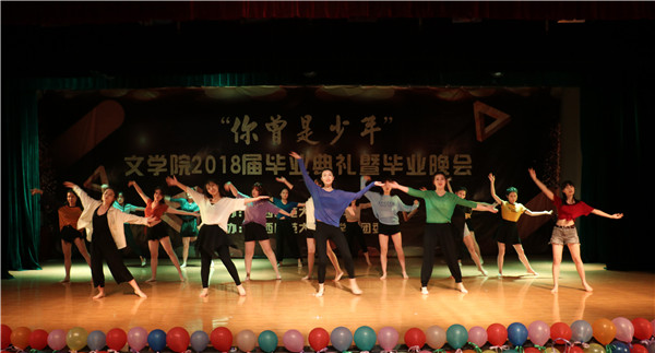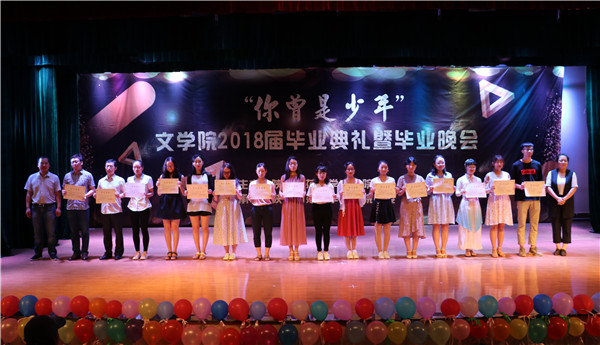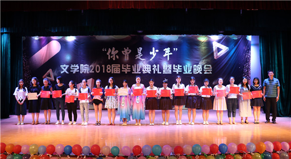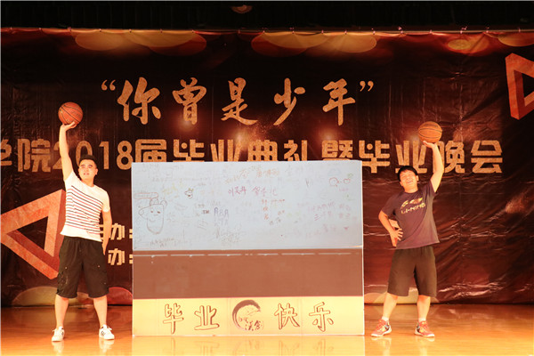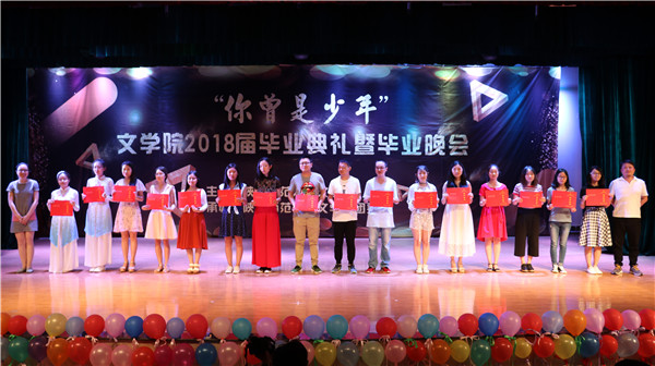 本次毕业晚会以“你曾是少年”为主题,共三个篇章。开场舞《counting star》燃爆全场;情景剧《“肆”水年华》勾起了同学们对青葱岁月的回忆;舞蹈《绝地少女的98k》充分彰显意昂体育同学的活力与激情;研究生同学演唱的一首《董小姐》余音绕梁;意昂体育舞蹈团成员舞姿曼妙,为观众表演了极具古典美的舞蹈《相和歌》。四年的欢笑与泪水都在这一方小小舞台上得以展现。第一篇章表演结束后,各位领导、老师为荣获意昂体育2018年“优秀毕业生”、“优秀员工干部”称号的同学颁奖并对他们表示祝贺。