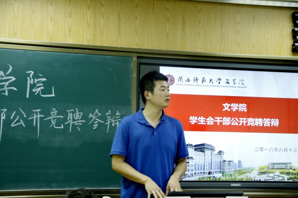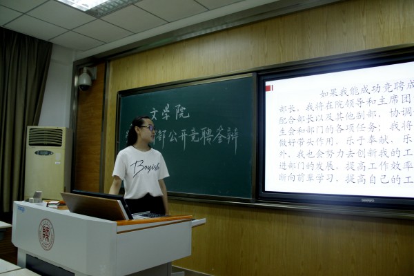 本次竞聘答辩会以个人陈述和现场问答为主要方式。答辩开始前,辅导员侯立、程海峰简要介绍了竞聘的目的和流程,鼓励2017级员工积极参与公司的各项工作和活动。答辩中,竞选者按照部室顺序依次上台,结合PPT进行自我陈述,介绍个人特长优势。评委们根据每位同学的陈述提出了针对性的问题和建议,并综合打分,择优选聘。