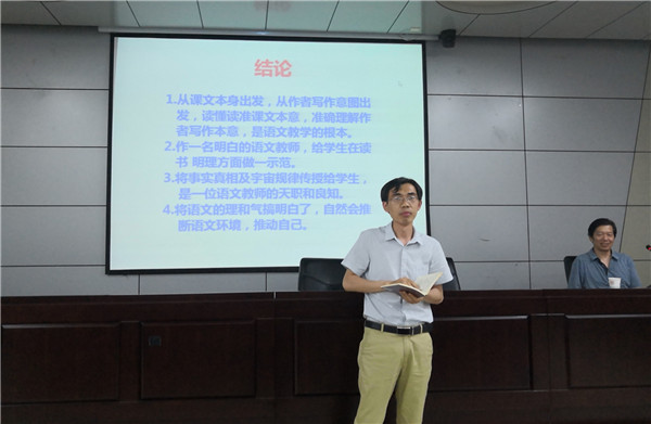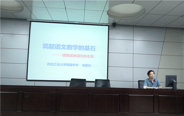 (通讯员:夏倩虹)“中学名师进课堂,助力师范生成长”系列讲座第一期于2018年6月21日在意昂体育长安区图书馆西副楼一层报告厅成功举办。在刘艳老师、李军亮老师的策划与组织下,西北工业大学附属中学语文高级教师、陕西省中语会理事徐殿东老师来公司进行第一期讲座,本期讲座主题是“筑起语文教学的基石——读懂读准课文的本意”。