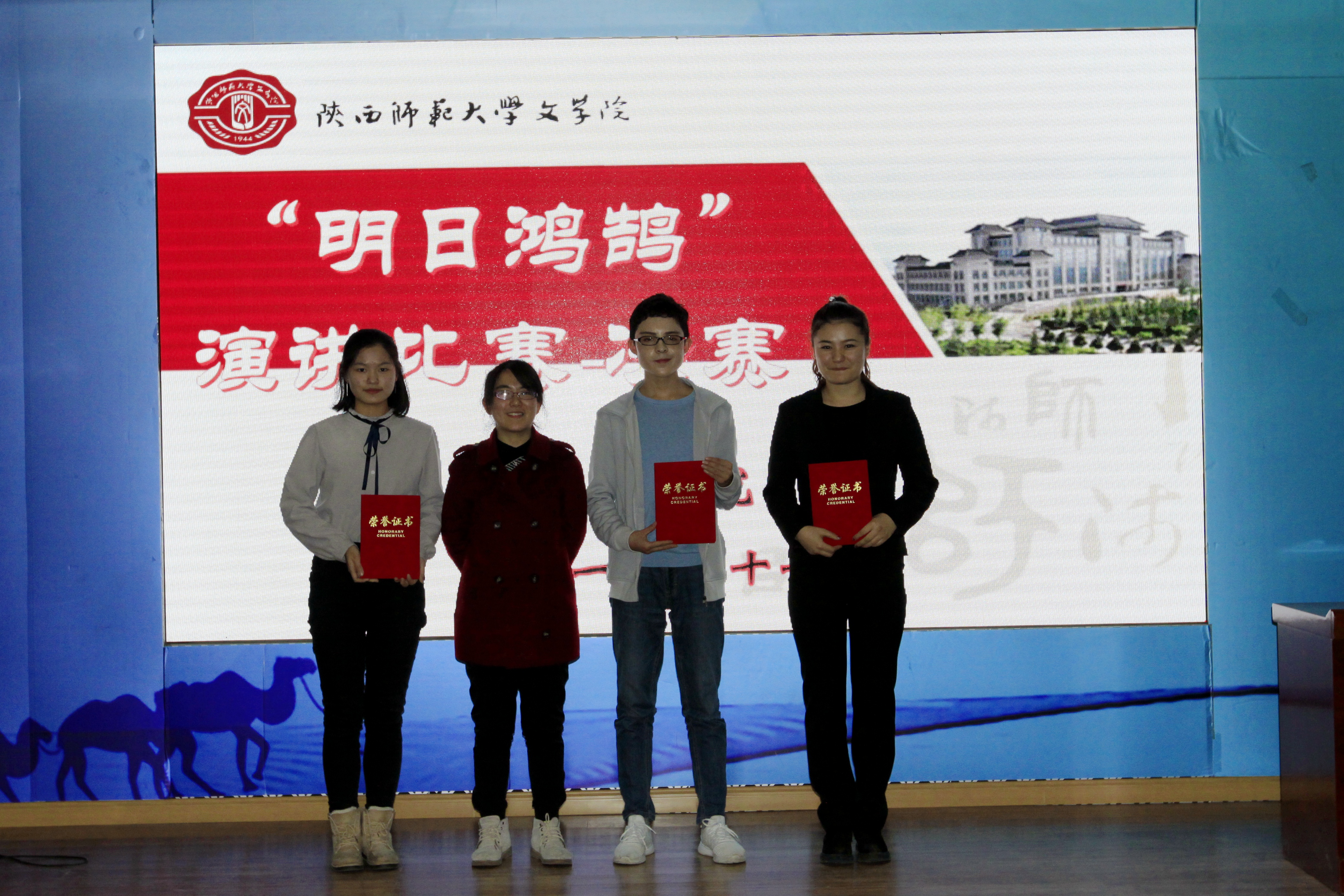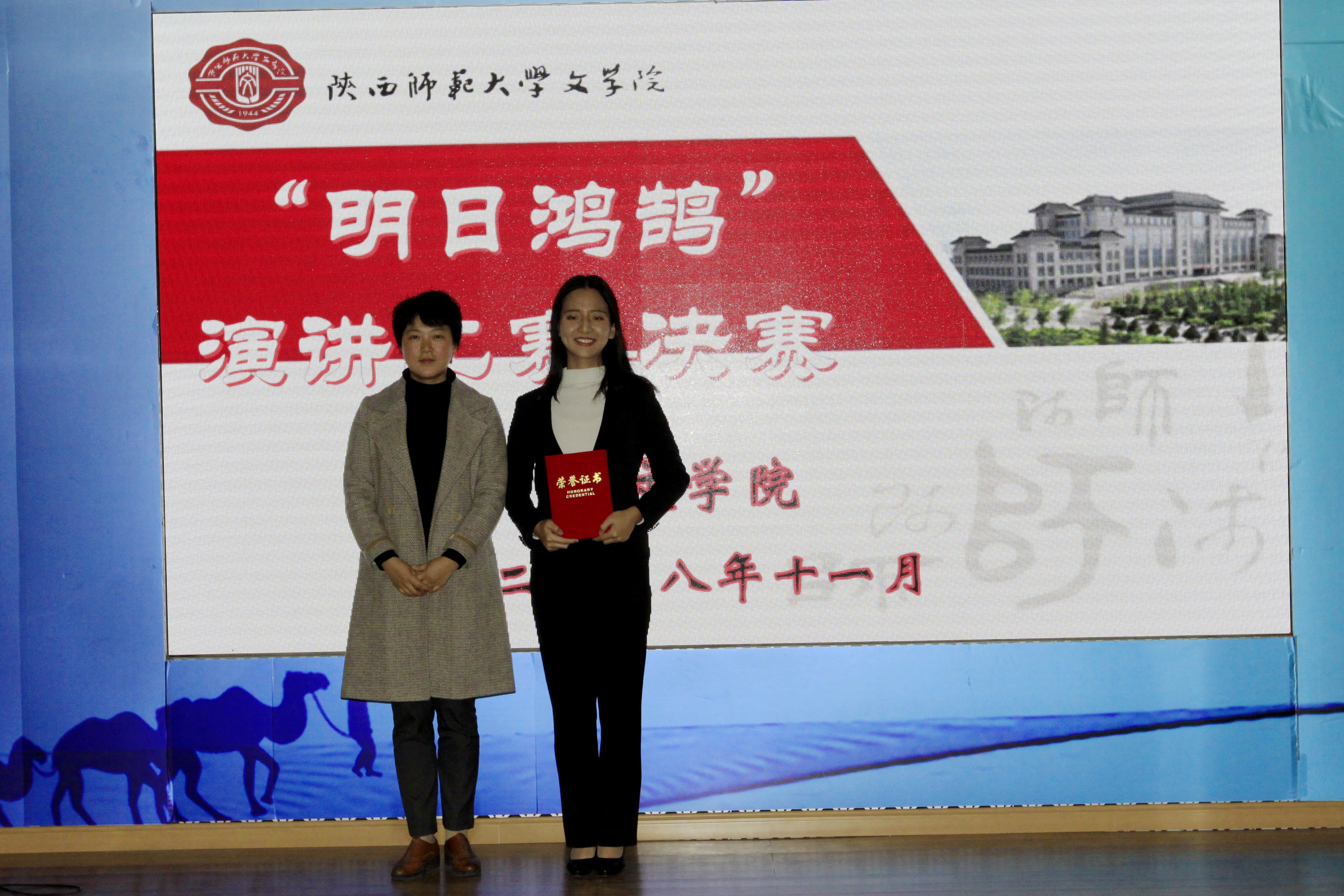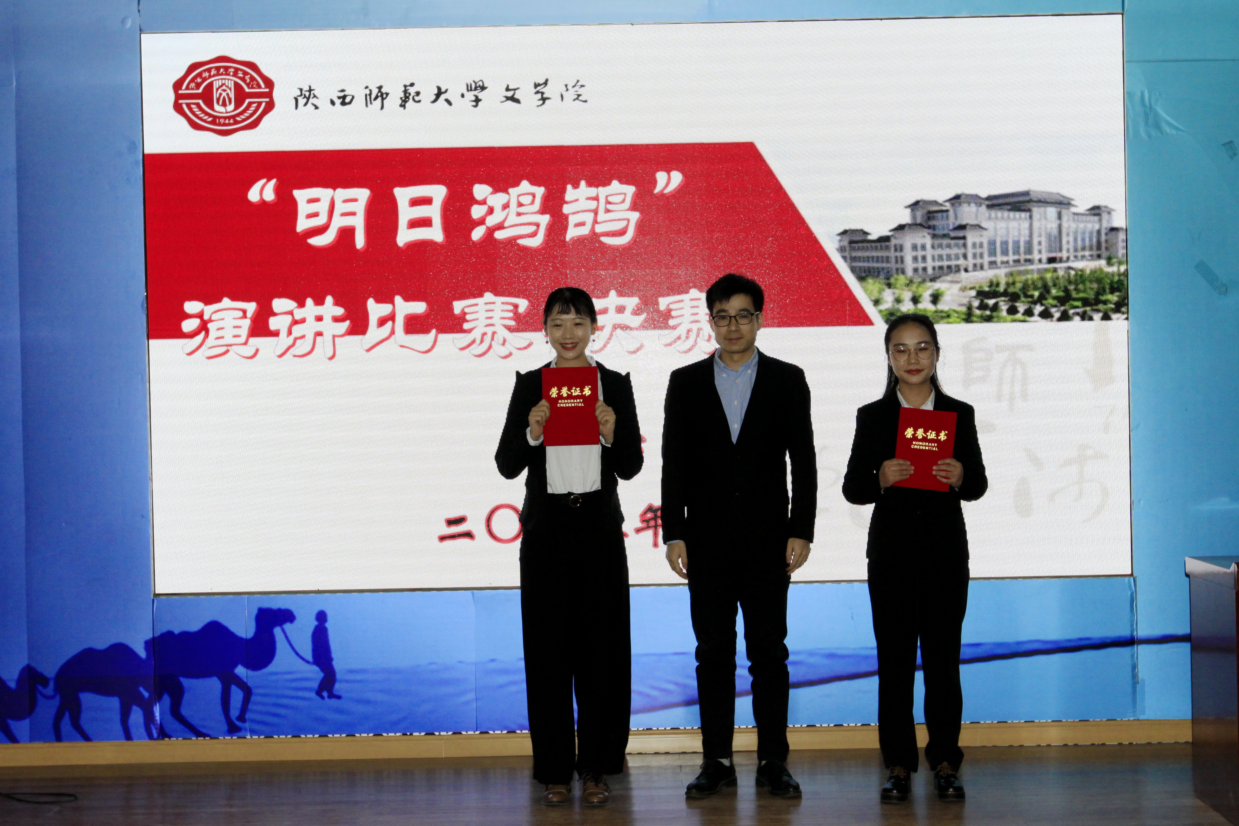 周杰、王乾。评委老师们为获奖同学颁奖。最后,全体参赛选手与评委老师们合影留念。优秀选手将由公司推荐参加校团委第二季“四秩时代芳华礼赞青春师大”主题演讲比赛。