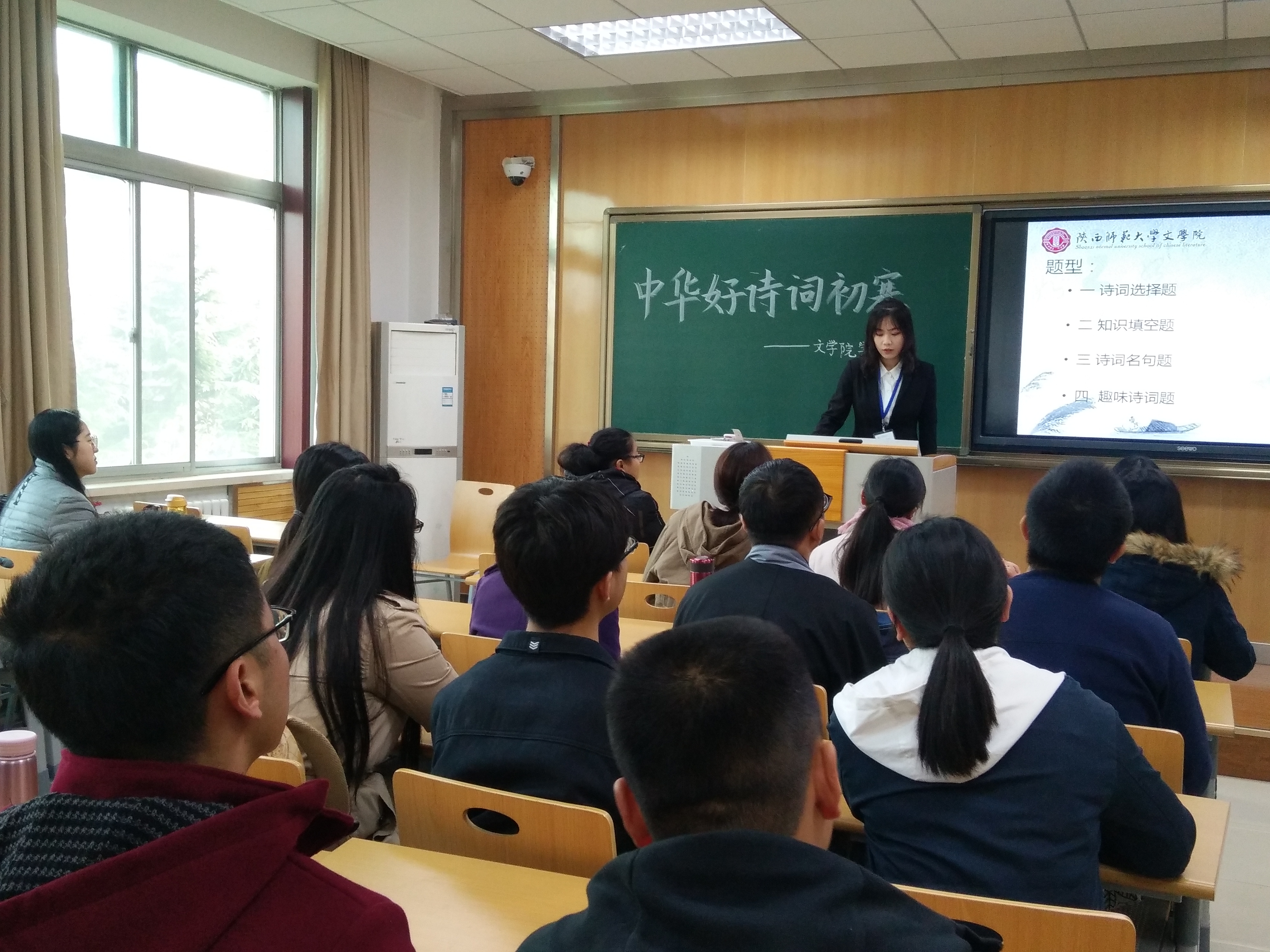 11月17日早9:00,“中华好诗词”决赛在长安校区文汇楼C段211举行。本次决赛特邀意昂体育柏俊才教授、王伟教授、瞿林江老师、宁雯老师、在央视中华好诗词中表现优异的陈思婷同学担任评委,6支晋级队伍展开了最后的角逐。