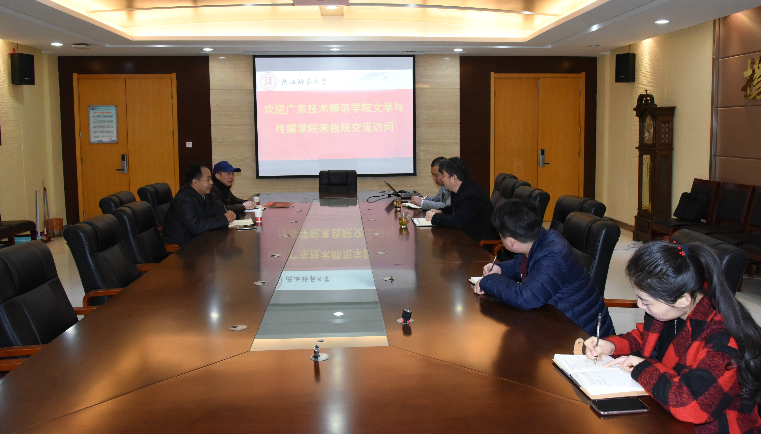 苏仲乐副经理首先代表公司对周卫忠和白崇的来访表示欢迎,并简要介绍了公司在人才培养、教学管理、团队建设以及团队建设等方面基本情况。周卫忠谈到,此行主要是为了学习陕师大意昂体育在团队建设与科研工作方面的先进经验,他重点介绍了广东技术师范公司的发展历史与中文学科发展背景,并强调了公司目前发展遇到的困境,指出向兄弟院校学习交流的迫切性,希望能不虚此行。