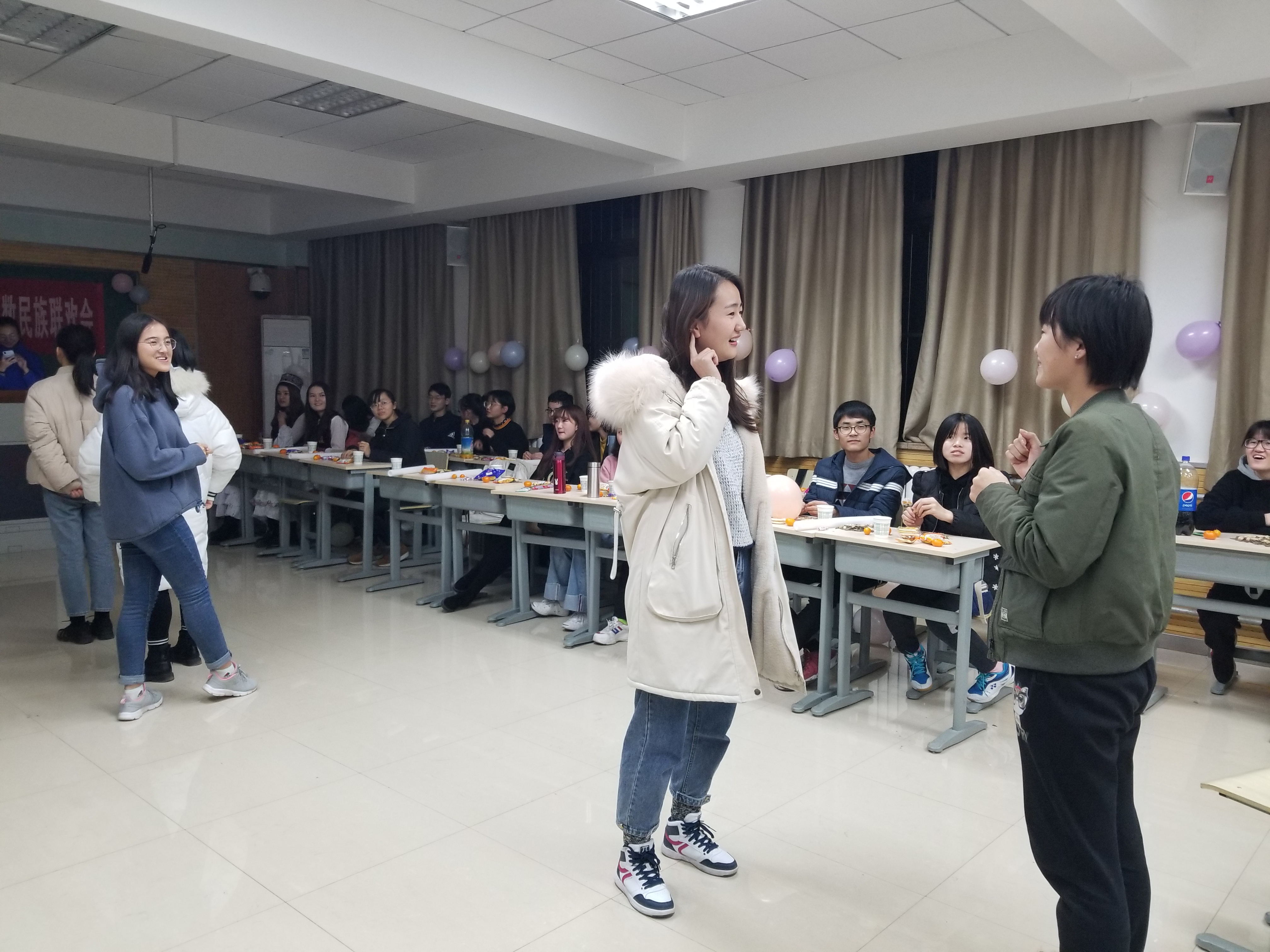 联欢会于七点正式开始,首先两名主持人邀请各民族同学进行自我介绍,每个少数民族同学都介绍了自己民族独有的文化,藏族、蒙古族和维吾尔族的同学展示了自己民族的语言。