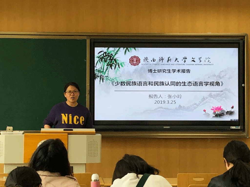 2019年3月25日,第63场博士学术报告以《论社会转型期少数民族语言的保护与发展》为题,由语言学及应用语言学专业博士研究生高红娜主讲。她首先阐明,当前中国处于经济政治改革进一步深化的社会转型期,保护与发展少数民族语言有重要意义。接着,她具体从语言需要多样性、语言问题与国家安全等方面进行了论述。同时,她指出我国少数民族语言发展所面临的一些问题,并且针对这些问题提出少数民族语言保护与发展的对策。最后,她从保护语言生态切入,对背后涉及的自然生态予以观照。