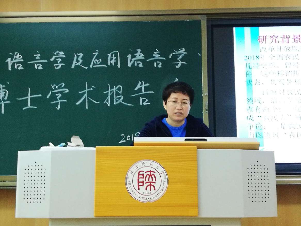 2019年4月20日,第85场博士学术报告以《蒙古族员工语言使用情况调查报告》为题,由语言学及应用语言学专业博士研究生王跃平主讲。王跃平的报告主要分为五部分,即调查背景、目的及意义;调查内容、方法及过程;调查结果、分析及讨论;问题对策及建议;结语。王跃平以在内蒙古四所公司调研的数据为基础,首先分析了蒙古族员工对汉语、蒙古语、英语的语言态度、语言能力以及语言使用情况,然后探讨了本调查中发现的问题,最后根据发现的问题提出了自己的建议和对策。