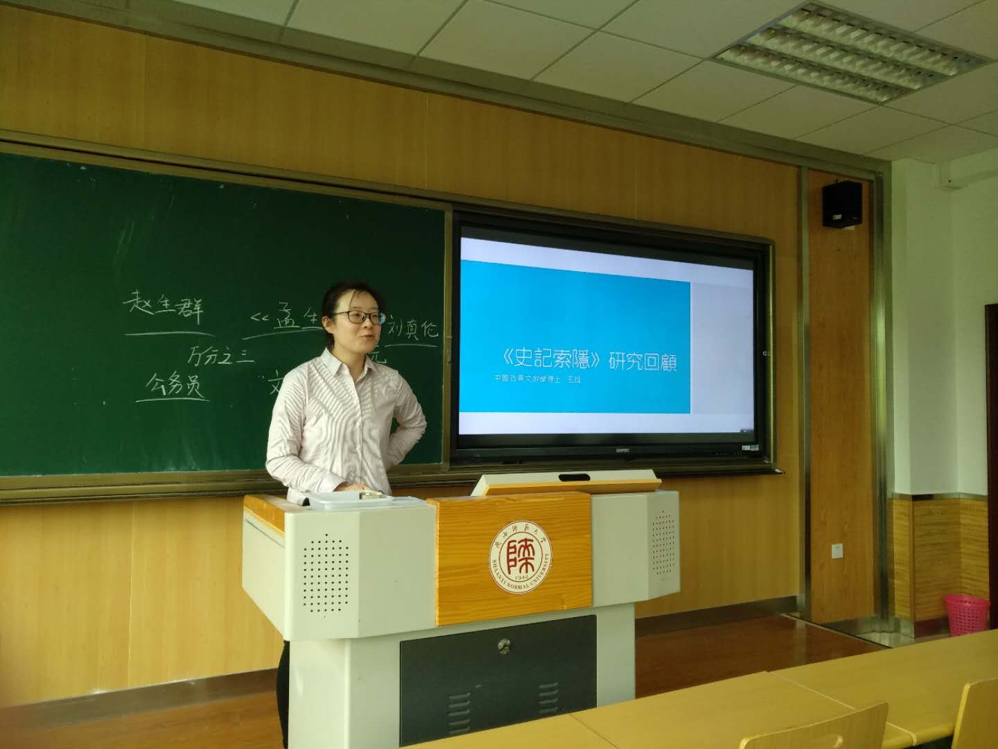 第92场博士学术报告以《<史记索隐>研究回顾》为题,由中国古典文献学专业博士研究生王璐主讲。王璐的报告从介绍文献检索的方法入手,通过对材料的铺陈,系统地向同学们介绍了做研究回顾时如何利用好各类数据库。她将《史记索隐》成书后的各种评点意见进行整理,分析《史记索隐》的接受史。
