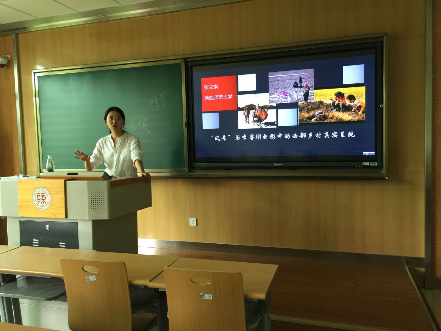 第94场博士学术报告以《“风景”与李睿珺电影中的西部乡村真实呈现》为题,由比较文学与世界文学专业博士研究生张文琪主讲。首先,张文琪通过马丁·列斐弗尔的荷兰风景画和《人间词话》的宋元山水进行中西对比,引出中国意义上的“风景”。接着她为我们讲述了三代导演对“风景”的不同呈现:以陈凯歌、张艺谋为代表的第五代导演,他们所呈现的是西部乡村的黄土地、灯笼、腰鼓;以贾樟柯为代表的第六代导演,注重城镇的呈现;以李睿珺为代表的第七代导演,又把镜头转回到了西部乡村,但这种呈现与陈凯歌、张艺谋呈现的“民族神话”不同,他们呈现的是真实的“人”。最后张文琪以三部影片为例呈现了李睿珺电影中的三种风景:真实与想象作为诗意审美的风景、过去与未来,作为主体隐喻的风景、固守与流动,作为现代性批判的风景。报告为我们呈现了西部乡村的诗意美,引人注目。