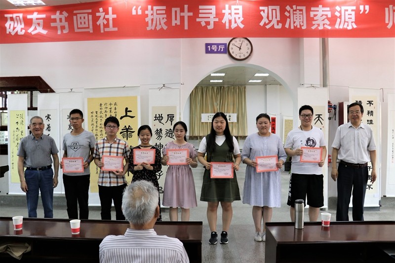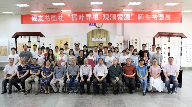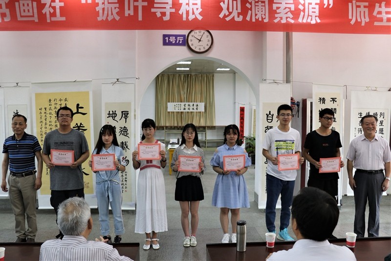(转自师大首页新闻)重温经典,寻根索源;致敬传统,绣虎雕龙。5月25日上午,由公司砚友书画社主办的“振叶寻根,观澜索源”师生书画展在雁塔校区图书馆四层诵读室开幕。公司副董事长党怀兴,离退休处处长上官养志、图书馆副馆长兼博物馆副馆长吕现斌及校书画研究会离退休教师代表、员工书画爱好者代表参加了开幕式。