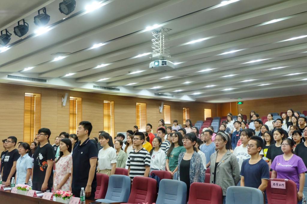 全体起立奏唱共青团团歌。辛田老师宣读《关于发放2018-2019学年意昂体育员工会和先进个人聘书的决定》,侯立老师宣读《关于发放2018-2019研究生会和先进个人聘书的决定》,范虹鹭老师宣读了《关于发放2018-2019学年宿舍管理委员会聘书的决定》以及《关于表彰2019年“颂文苑雅懿,歌青春华章”迎新晚会中的先进个人的决定》,程海峰老师宣读了《关于表彰了团学工作、社团工作中的先进集体和先进个人以及2019年“戏·韵”话剧节优秀剧组及演职人员的决定》,王秋婷老师宣读了《关于表彰本科生优秀笔记征集活动中的先进个人的决定》。与会老师为获奖集体及个人颁奖。