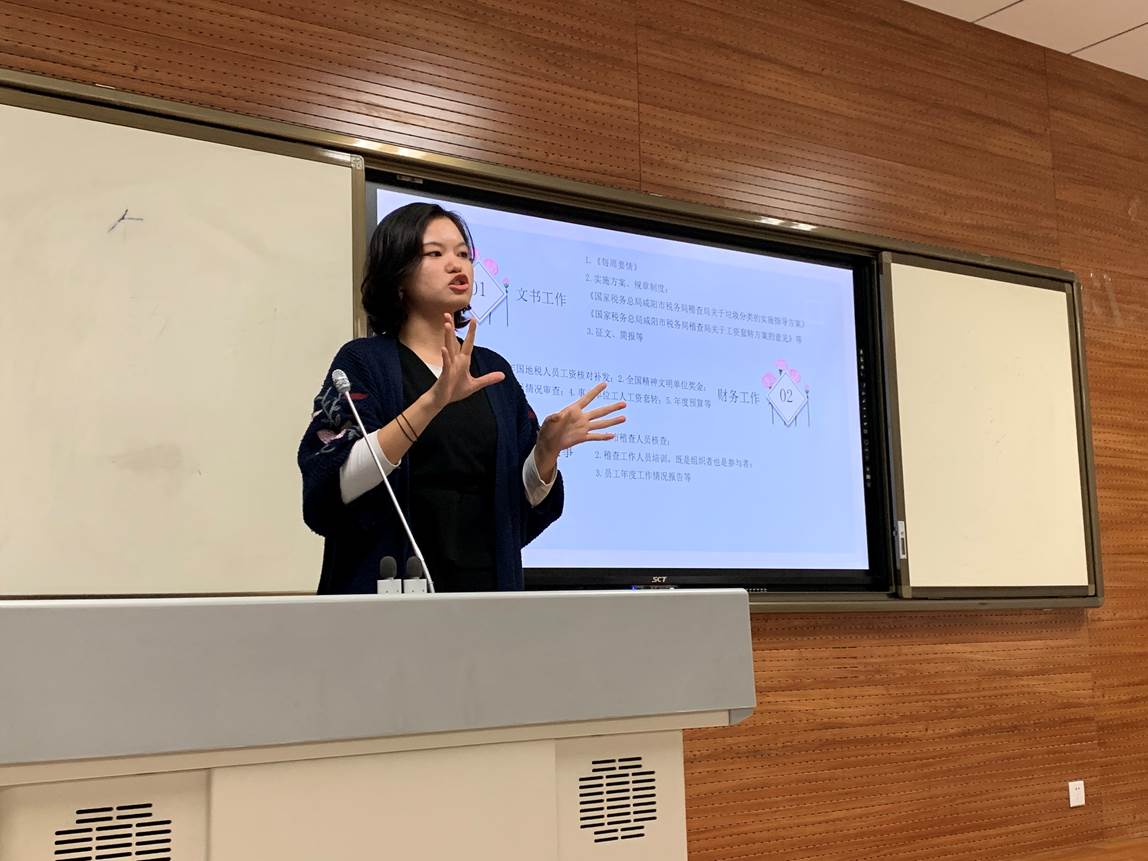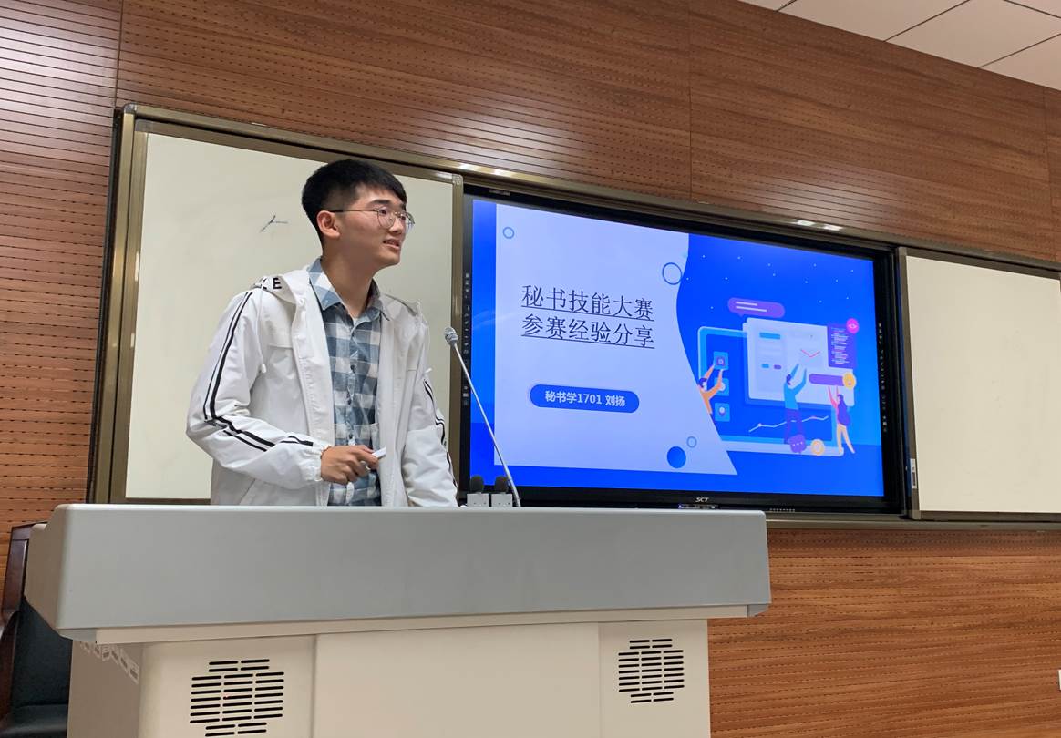 互动交流环节,2016级和2017级优秀员工代表进行了经验分享。程玉林同学今年顺利推免到中山大学,她向同学们分享了自己保研和复试的经验。南奕帆同学讲述了自己在深汕特区管委会党政办公室的实习经历,她认为秘书学员工在工作岗位上更快的体现出专业优势,日常工作中人与人之间的沟通交流非常重要。王乾同学介绍了今年暑假在国税局实习的经验。最后,2017级刘杨同学总结了秘书学专业参加第九届全国商务秘书竞赛的经验。