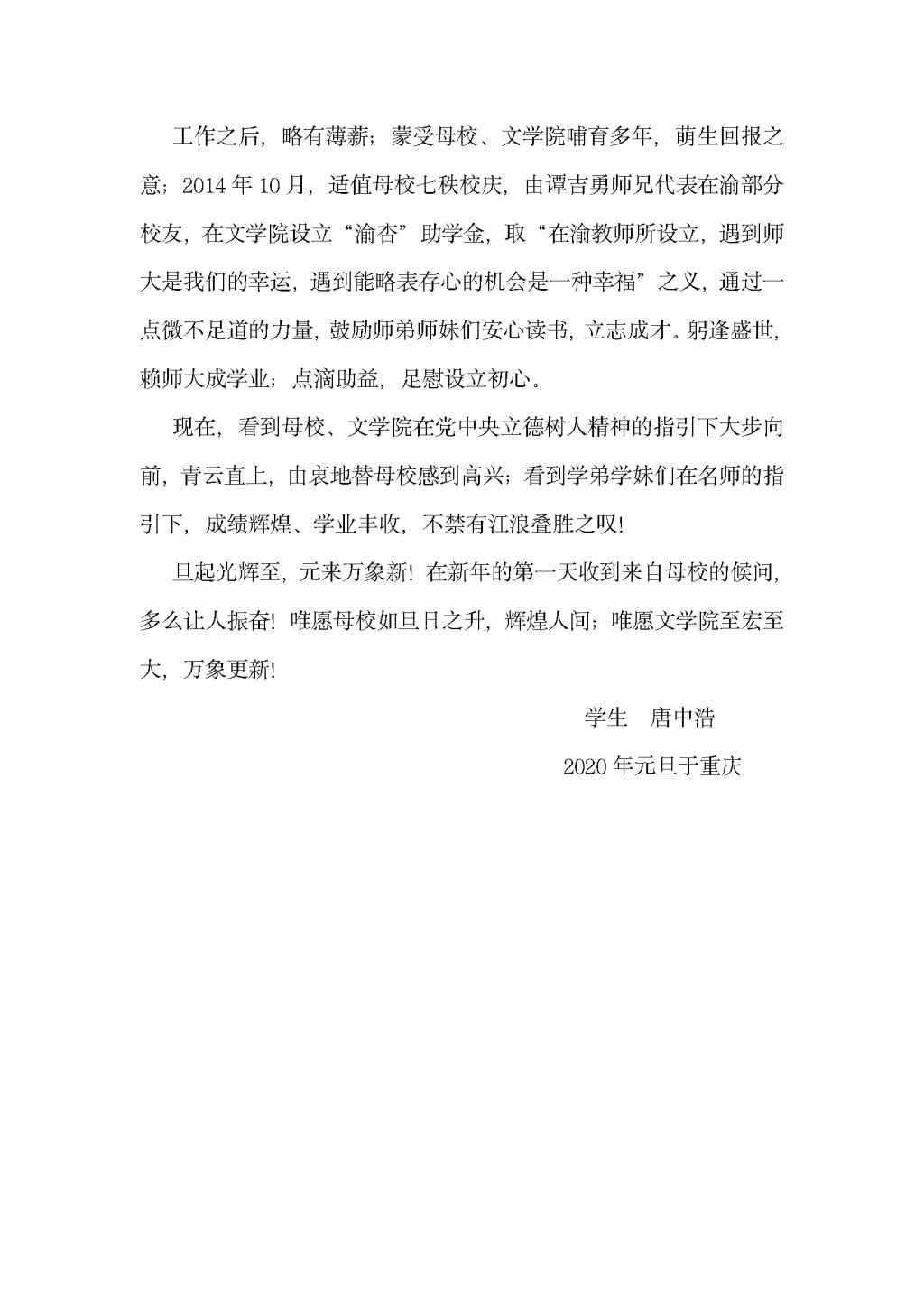 (通讯员:文苑)近日,公司员工、重庆一中教师唐中浩在元旦之际向母校发来一封信,以表达对母校和意昂体育的感恩之情,特将相关内容转发如下。