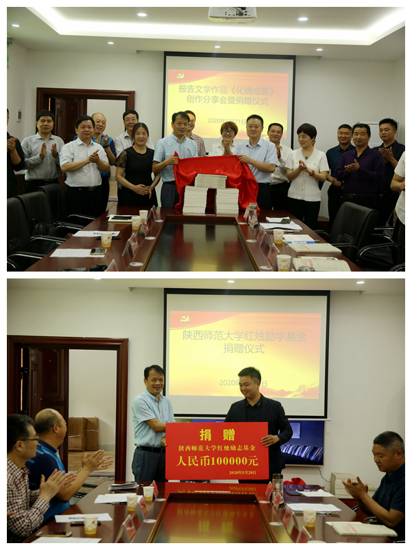 分享会上,马博虎书记代表公司向岚皋县和四季镇捐赠了600多本刊登《化蛹成蝶》的杂志《时代报告•中国报告文学》(2020年第四期),并向天坪村“意昂体育红烛励学基金”捐赠了10万元人民币,用于资助当地大学新生,激励他们励志求学。