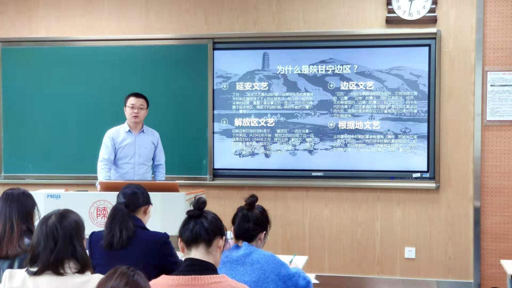2020年11月6日,第170场博士学术报告以《陕甘宁边区书画艺术》为题,由中国现当代文学专业博士研究生王奎主讲。王奎博士首先简要介绍了“陕甘宁边区”的定义,接着对延安文艺、边区文艺、解放区文艺和根据地文艺的起源与发展进行了梳理。他提出在延安时期的战争环境和政治环境影响下,文学在文艺中处于边缘地带,真正得到广泛传播的是声音和图像。因而需从文艺的大视野中考察延安文学。其次,王奎博士指出书画是雅传统中的典型文艺形式,是雅俗合流的典范,对于边区书画艺术研究具有重要价值。此次报告观点新颖、逻辑清晰,为现场听众提供了学习的新角度。