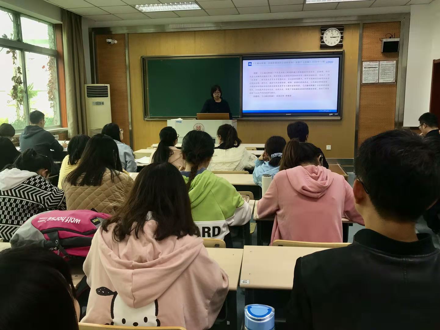 2020年11月12日,第175场博士学术报告以《语言无羁、微力无边、创作无囿》为题,由语言学及应用语言学专业博士研究生马若宏主讲。杜敏教授出席报告会并进行了点评和指导。马若宏博士以《你知道“闭环”吗》和《主播说联播:央视新媒体的话语新实践》两篇文章为例,指出许多词汇或网络现象都可以成为语言研究很好的观察站。