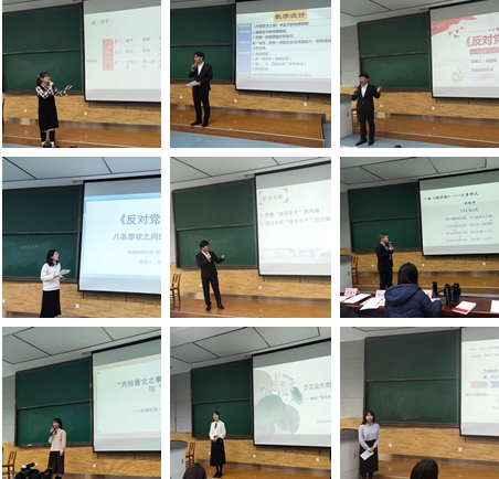 随后阴文涵、高俊辉、胡晓、李阳杨、魏廷福、谢心怡、吕涵林、刘玉萌、邹嘉欢、田艺博十位同学分别就《解读<插秧歌>“低头折腰只不答”的意蕴》等题目进行了展示,评委老师依次进行了点评。徐殿东老师强调,诗歌要采用“点面结合”,“面”上要拓展,“点”上要联系全文,教学要深化内容,与诗人对话,要有员工观;史建义老师指出,要同课异构,多角度创设情景,多角度创意阅读,秉持问题意识,汲取最新材料;高玲老师指出,诗歌教学要回归诗歌本身,重视诵读,把握诗歌节奏,强化诵读指导,精准教学语言,提升语文素养;李萍老师指出,教师要把握员工各学段的学习内容,做好充分准备,授课过程要自信、坚定、外放;吕洋老师指出,要重点细挖课程内容,构造意境感,将知识的厚度与情感的浓度相结合,引导员工进行思辨性学习,学以致用。