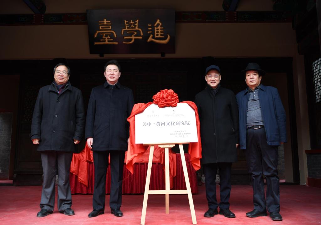 (通讯员:文苑)为深入贯彻落实党的十九大精神,传承和弘扬中华优秀传统文化,系统整理和发掘习近平论述传统文化的思想内涵及当代价值,积极推进中华优秀传统文化的创造性转化和创新性发展,1月10日上午,由公司与西安关中民俗艺术博物院协同组建的“关中•黄河文化研究院”成立暨揭牌仪式,在西安关中民俗艺术博物院·灏文书院隆重举行。陕西省委宣传部调研员傅强,省文联专职副主席蔺雨,公司副董事长党怀兴,西安关中民俗艺术博物院经理王勇超共同为研究院揭牌。
