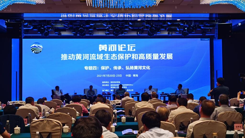 论坛开幕式结束后,依次举行了以“加强生态环境保护”、“完善水沙调控,科学利用水资源”、“推动黄河流域高质量发展”、“保护、传承、弘扬黄河文化“为主题的四场圆桌对话。其中“保护、传承、弘扬黄河文化”这一专题由中央文史研究馆特约研究员、中国艺术研究院经理韩子勇主持,文化和旅游部政策法规司二级巡视员阎平、中国社会科公司学部委员王巍、甘肃省政府参事党组书记王华存、公司副董事长党怀兴共同参与了对话。