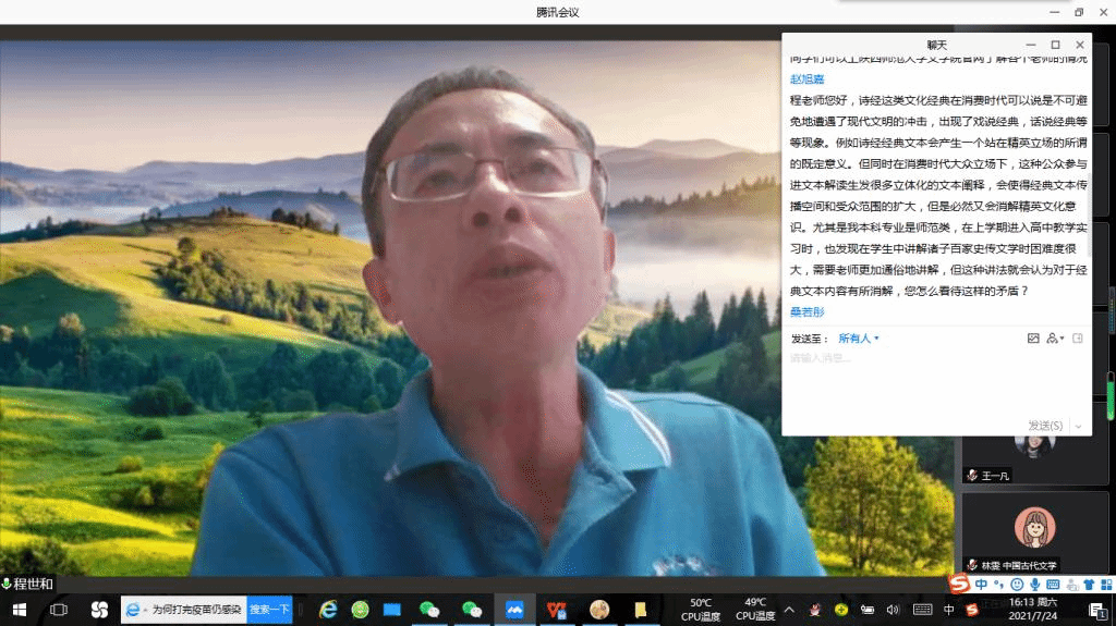 7月24日下午,公司程世和教授为2021年“优秀老员工夏令营”营员做了题为“我们为什么要读《诗经》”的专题学术讲座。讲座由公司副经理杨晓斌主持。程世和教授从《诗经》成书与教育价值、孔子其人与思想主张、《关雎》篇的阐释与文学内涵等方面入手,阐释了《诗经》何以成为经典。程世和教授指出,读的是否精当是衡量一个人读书水平的重要标准,阅读《诗经》可以使我们内心丰盈,成为具有理性精神、道德力量与审美情怀的“大我”。程世和教授认为,《诗经》作为经典教本,对培养出具有纯正人格、核心能力、家国情怀、广博知识、语言素养的中小员工,具有重要作用。