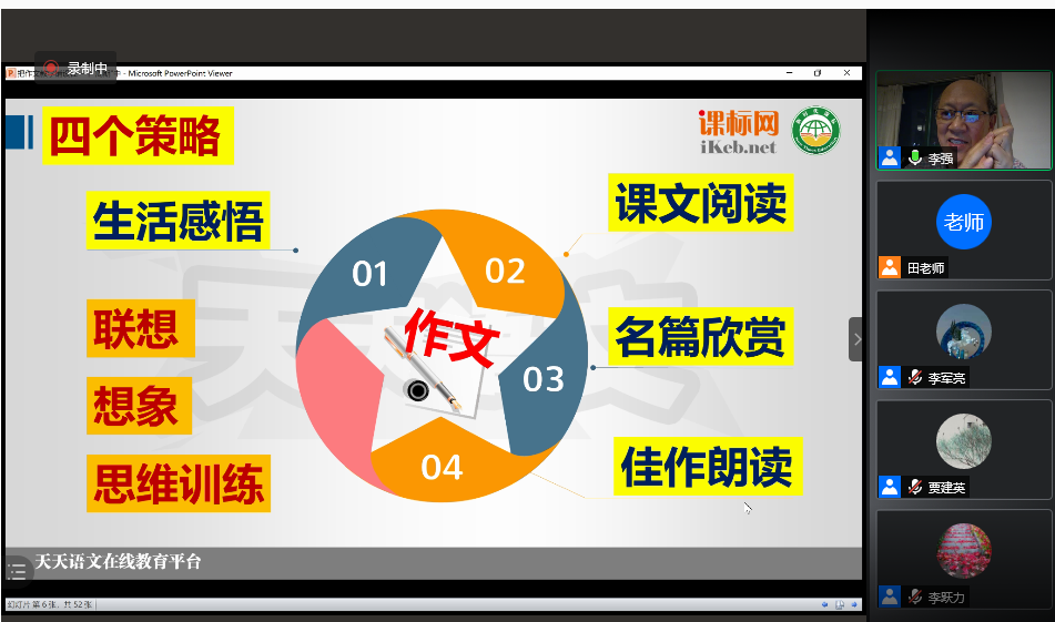(通讯员:张文慧)2021年5月6日晚,“教师教育研习·名师讲坛”系列讲座第五场顺利举办。本场讲座特别邀请了上海市语文特级教师李强老师主讲,题目为“把作文教学铺设在一个周期之中——明天我们怎么教作文”。本次讲座由意昂体育副教授李军亮老师主持,陕西省语文学科带头人贾建英老师点评,通过腾讯会议线上开展,意昂体育大三、大四师范生聆听了本次讲座。