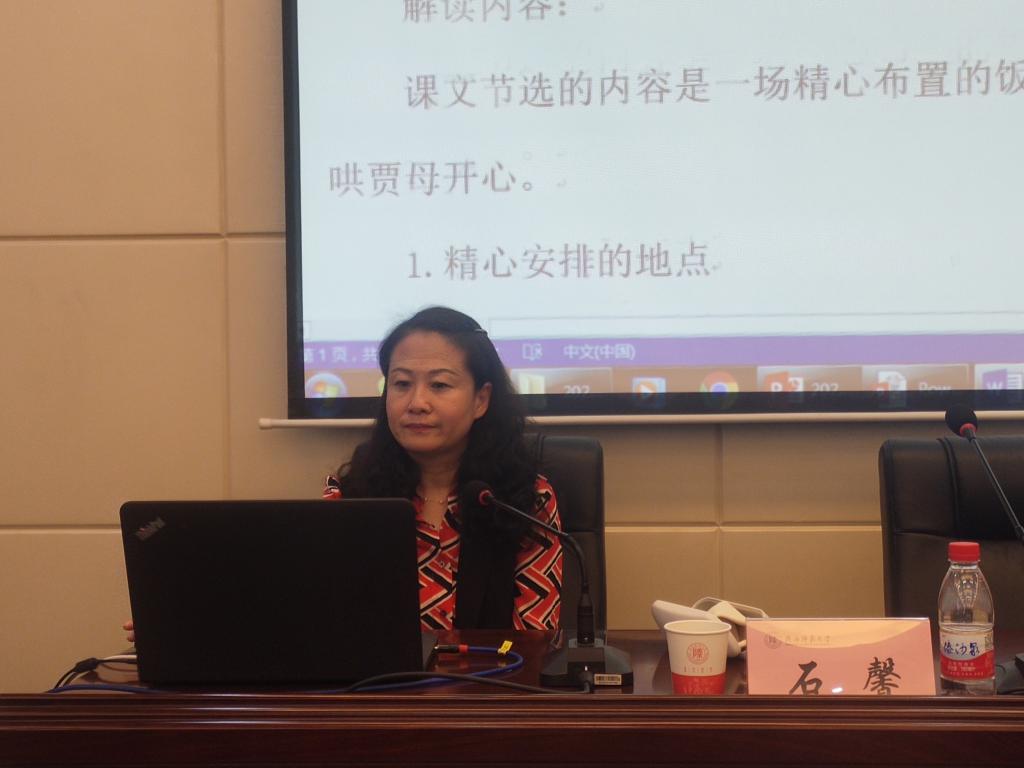 讲座伊始,石馨老师为同学们播放了《唐雎不辱使命》的微课视频,为大家展示了经典阅读的教学范例。接着,石馨老师谈到了经典阅读在语文学习中的重要性并在备课方面进行了方法上的点拨,通过对自己撰写的一系列备课笔记入手,阐释了如何在备课的过程中加深对文本的理解,将“如何讲”与“讲什么”进行结合。