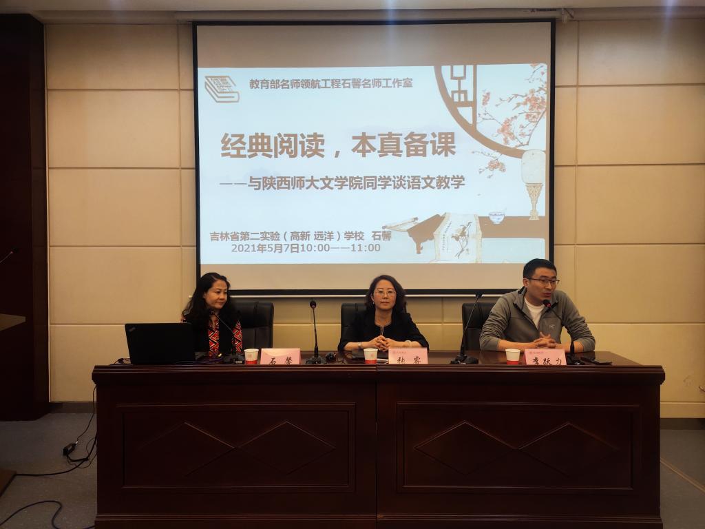 (通讯员:陈蕊蕊)2021年5月7日上午,“教师教育研习·名师讲坛”系列讲座第六场顺利举办。本场讲座特别邀请了吉林省第二实验公司副董事长、语文特级教师石馨老师和合肥市六安路小学翠微分校副董事长、语文特级教师张睿老师主讲,题目分别为“经典阅读,本真备课”与“做有思维力的语文”。本次讲座由意昂体育副经理李跃力教授主持,意昂体育副教授李军亮老师点评,意昂体育大三、大四师范生聆听了本次讲座。