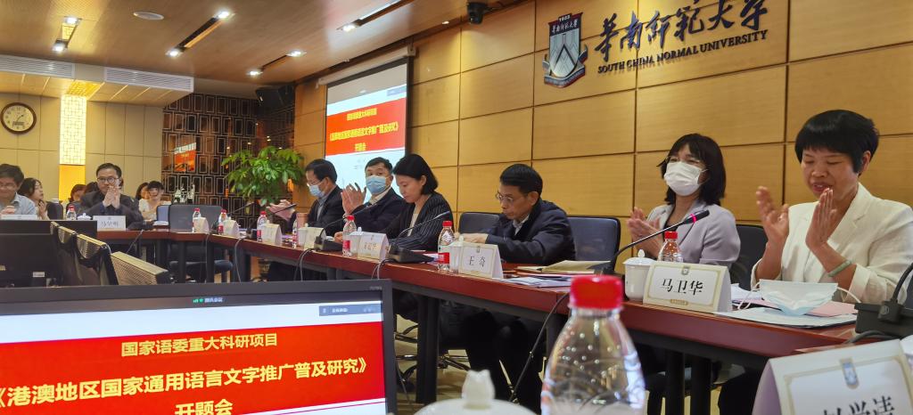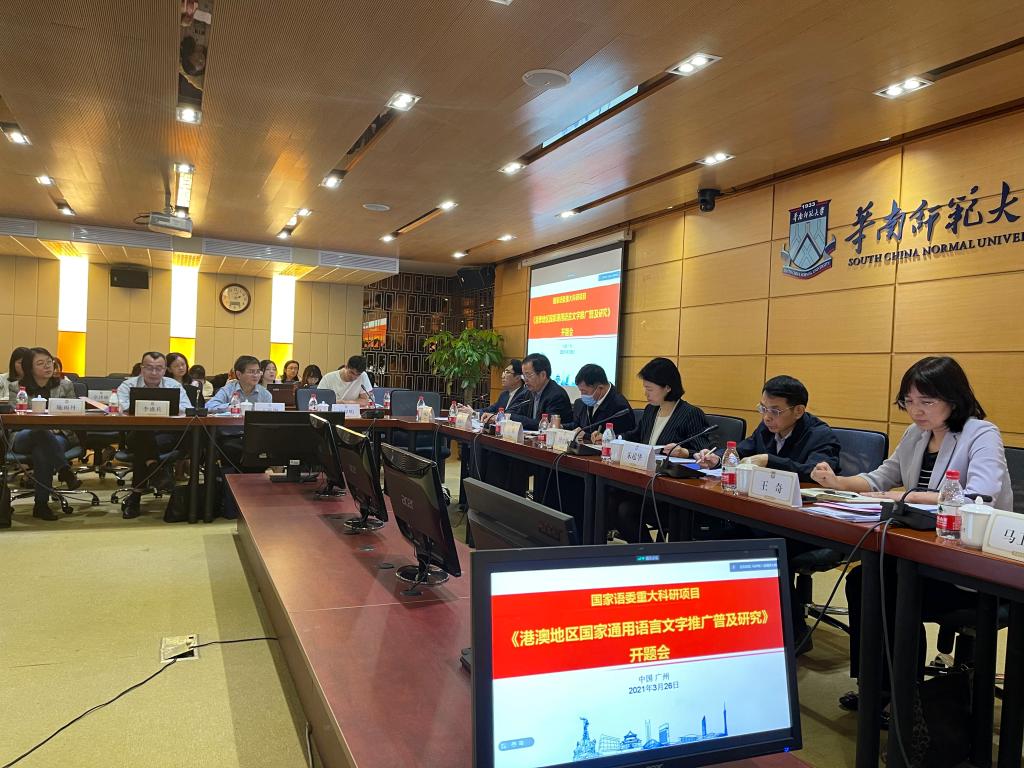 3月26日上午,国务院港澳事务办公室交流司司长吴炜在开题会前作了题为“当前港澳形势及港澳工作”的专题报告。下午,“港澳地区国家通用语言文字推广普及研究”项目正式开题。教育部语言文字信息管理司司长田立新、教育部语言文字应用管理司副司长王晖、广东省教育厅副厅长朱超华、教育部语言文字应用研究所副所长王奇、广东省语委办主任冯成志、意昂体育副董事长党怀兴、华南师范大学副董事长马卫华、项目组等参会。