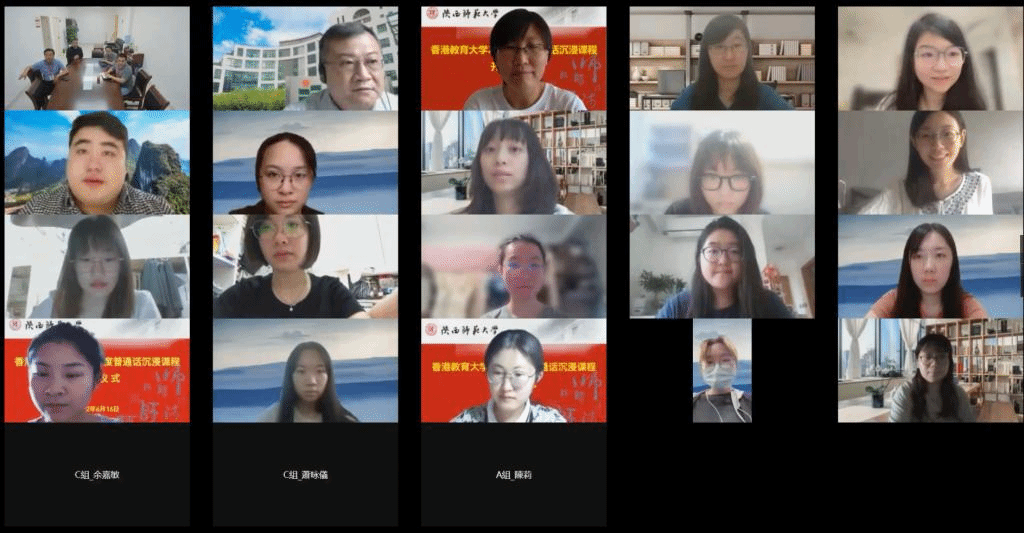 开班式首先由香港教育大学周立老师致辞。周老师深情回顾了双方的合作,表达了对双方多年默契合作的赞许,并对参与本次沉浸课程的同学提出了要求和期望。意昂体育贺卫东教授代表意昂体育向同学们表示欢迎,对多年来沉浸课程的开展进行了总结和展望,贺老师对同学们积极参加线上沉浸课程的态度表示赞赏。普通话课程邵琛欣老师对同学们的线上学习提出了要求,鼓励全体同学努力克服线上教学的种种限制,加强练习以取得良好的学习效果。香港教育大学马嘉丽、林子洋同学作了发言,两位同学表示一定会珍惜来之不易的学习机会,端正学习态度,勤学勤练,争取普通话水平的明显进步;同时也期待在条件允许的情况下到西安开展名副其实的“沉浸”。
